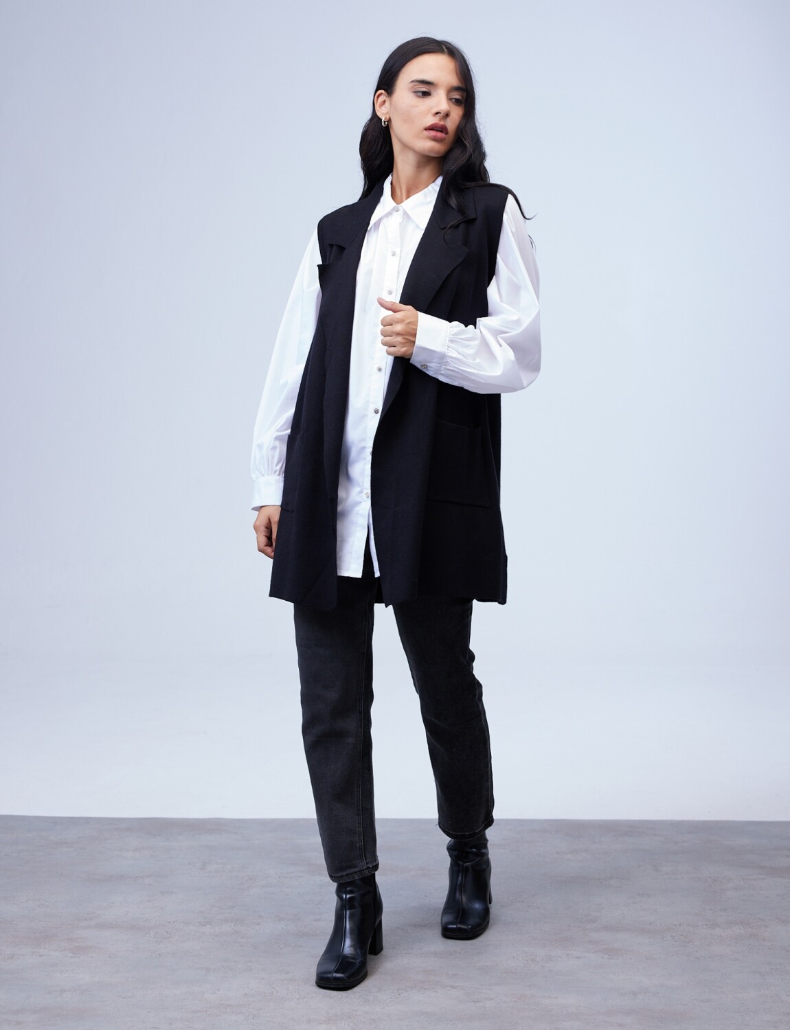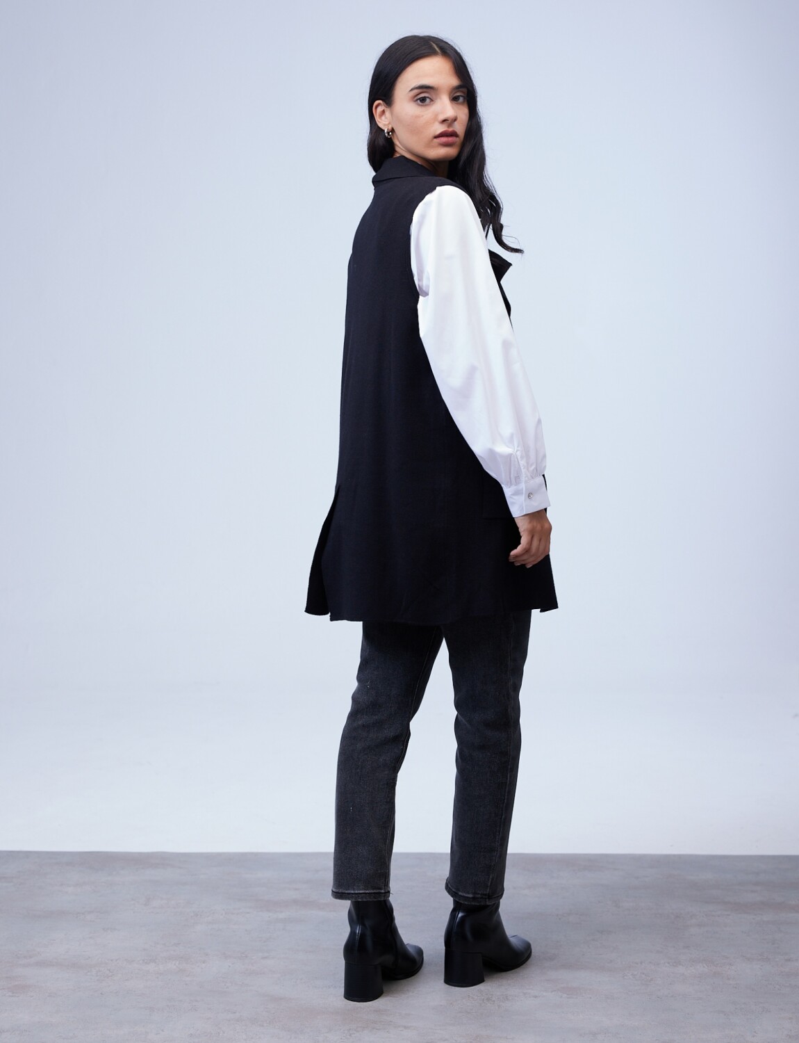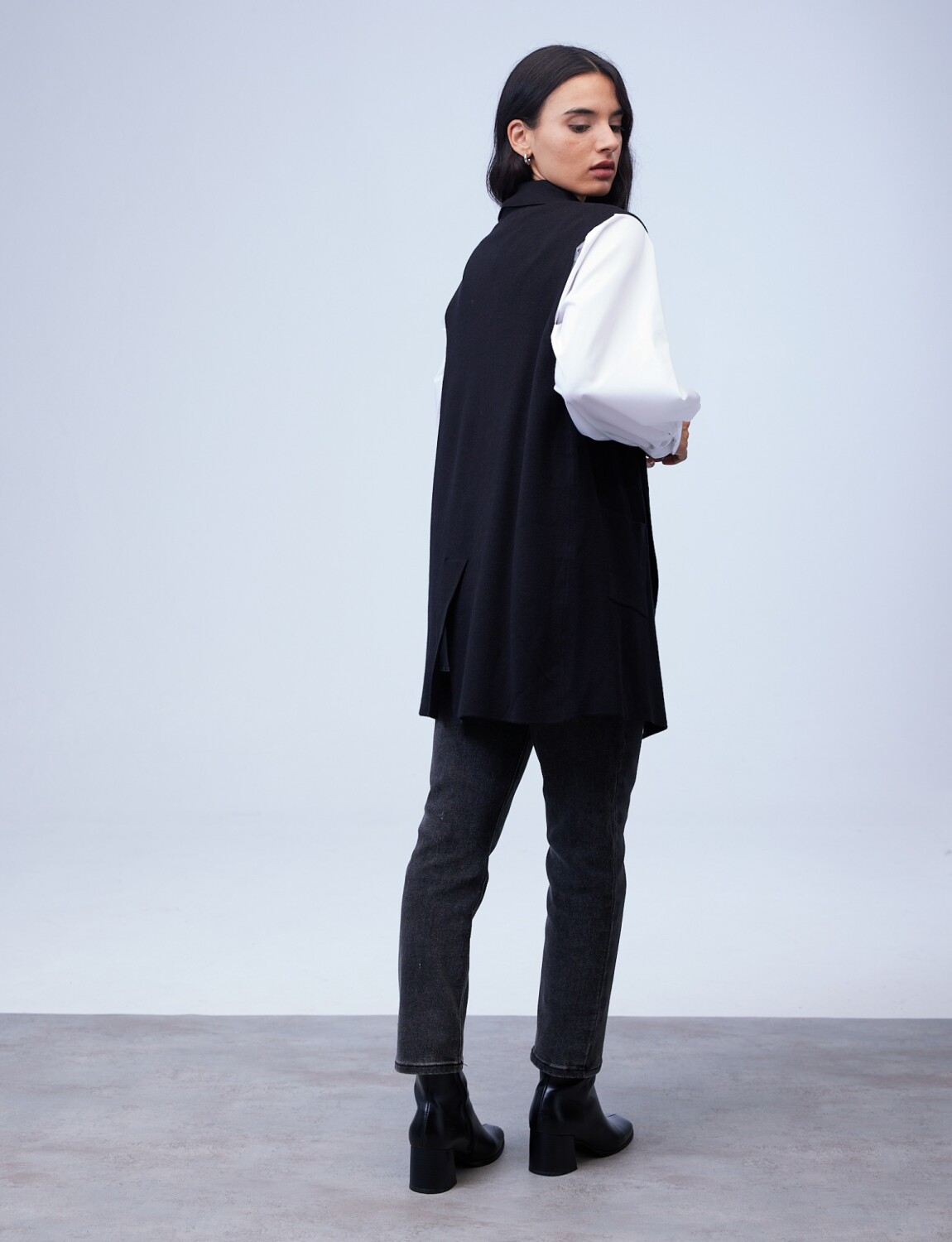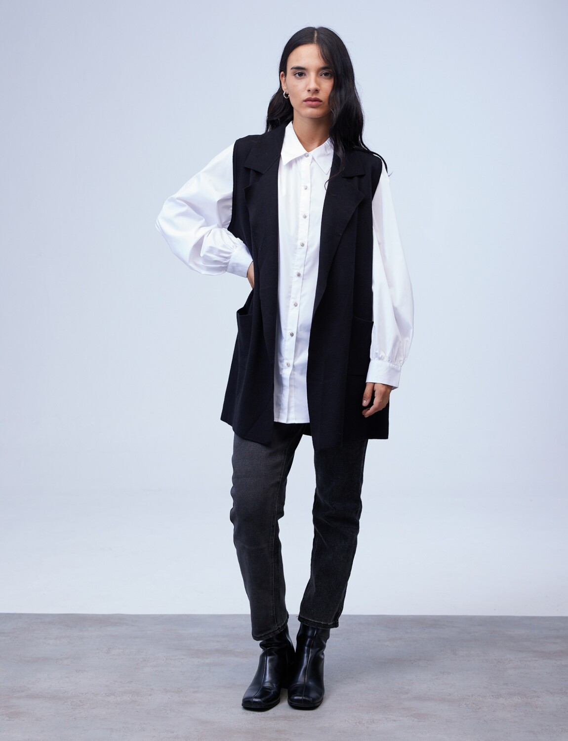 Chaleco Largo Solapa - Negro