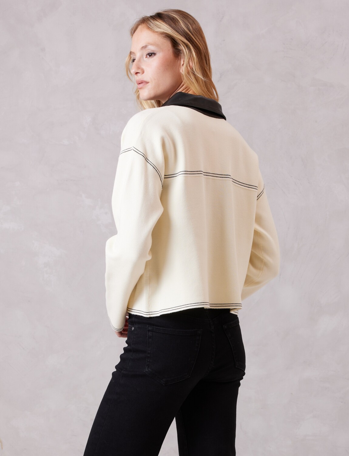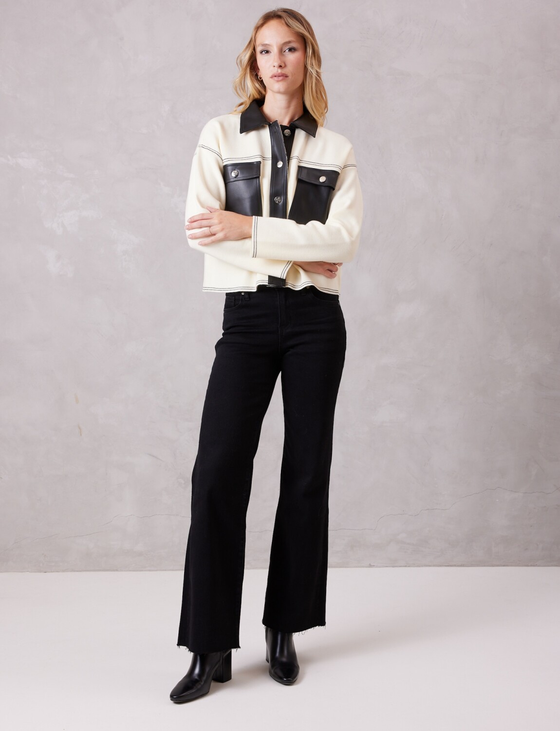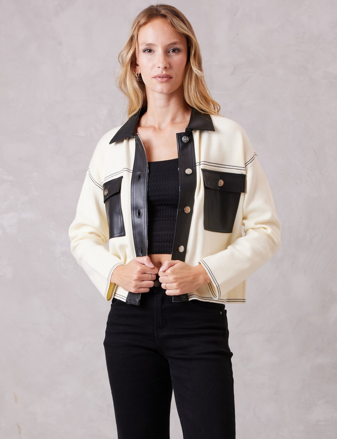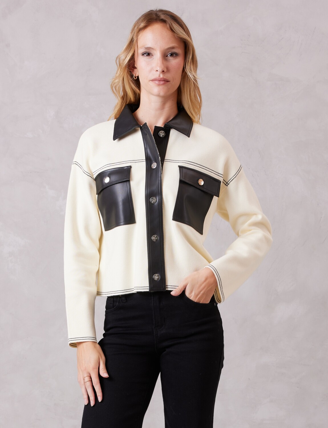 Chaqueta Combinada Eco Cuero - Crudo