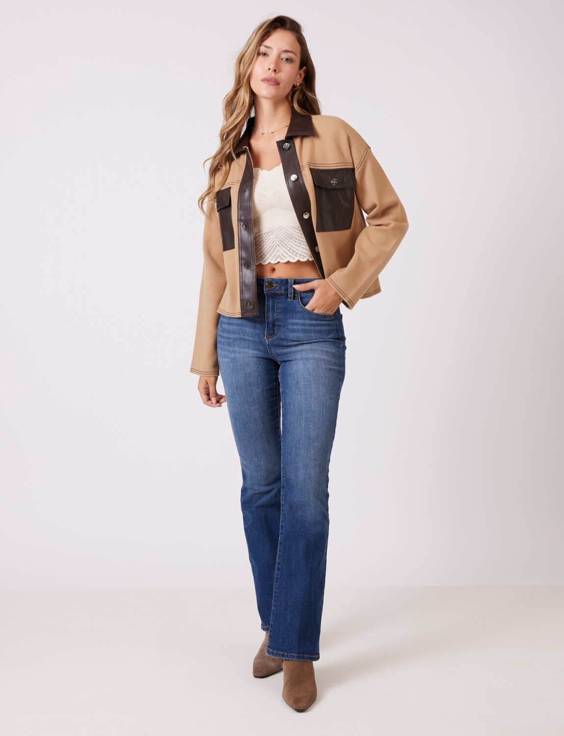 Chaqueta Combinada Eco Cuero - Tostado