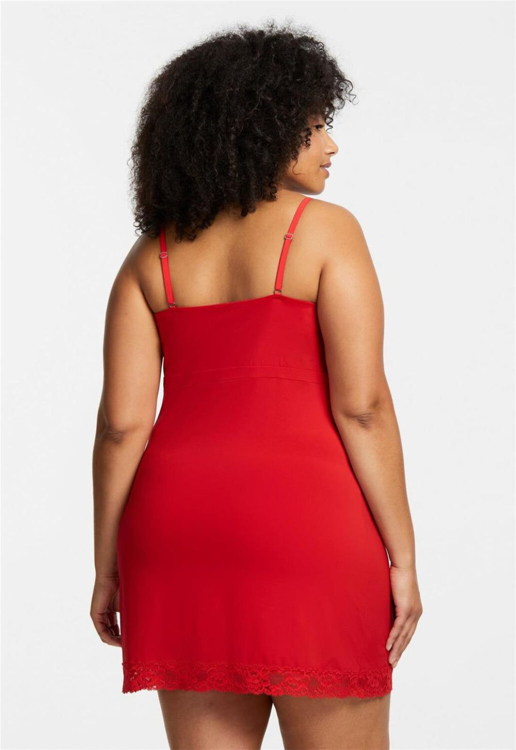 Apliques de encaje en ruedo y escote.