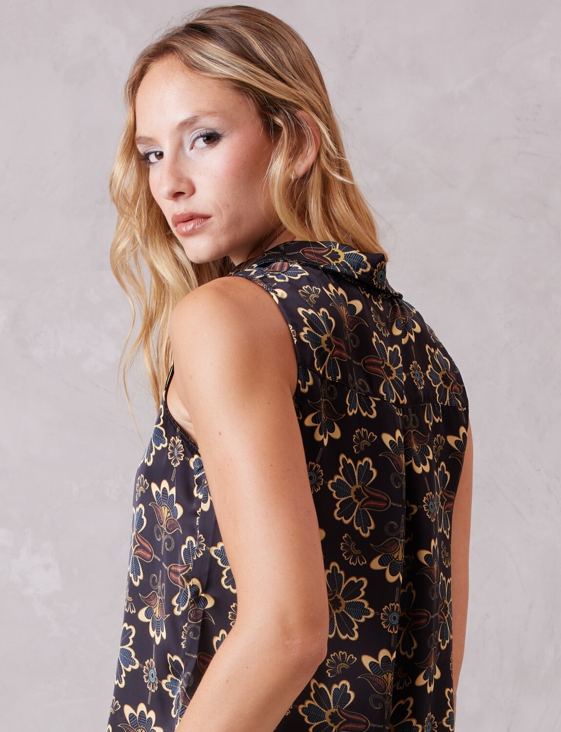 Silueta holgada, sin mangas, proporcionando una estética limpia y fresca.