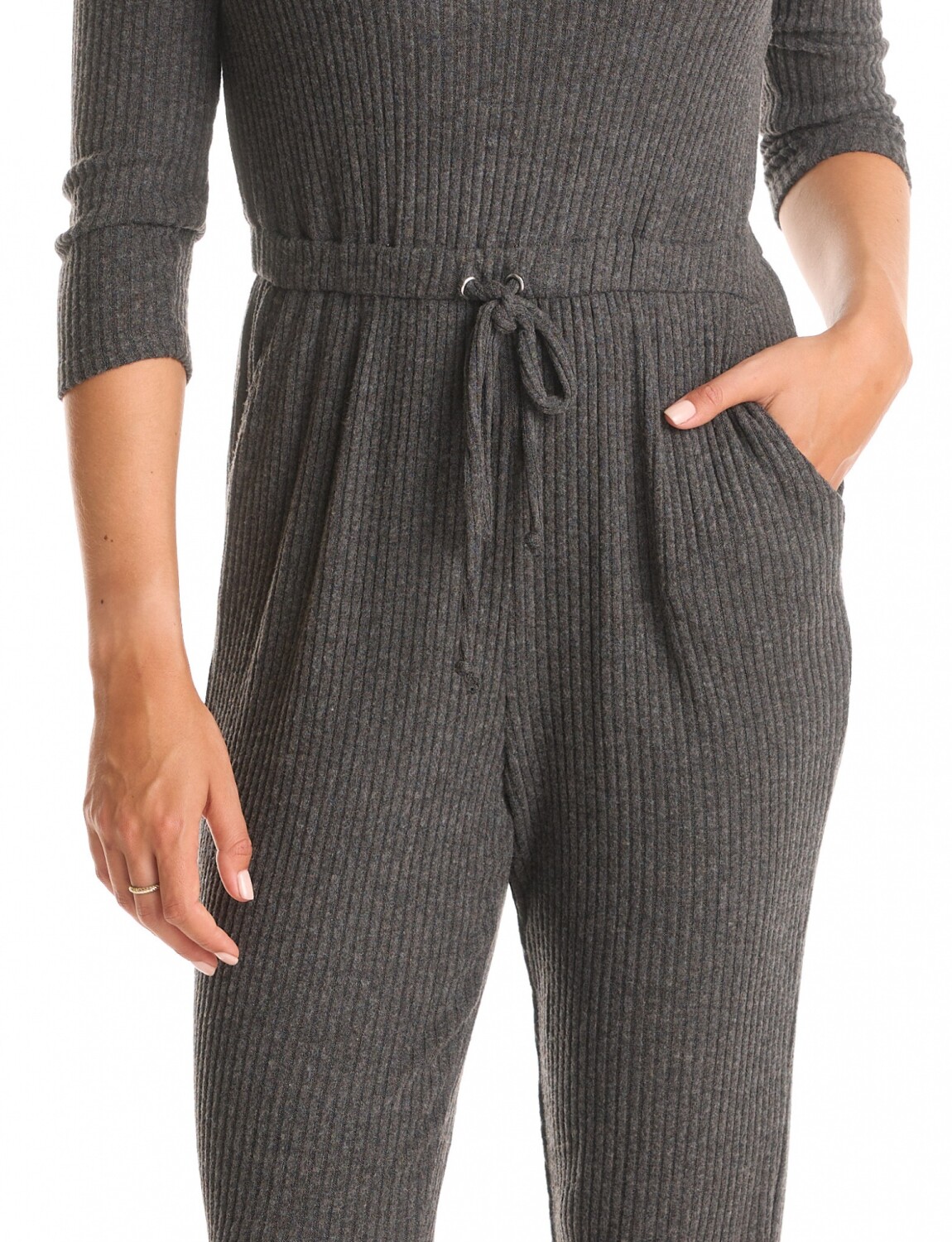 Escote redondo y cintura elastizada con lazo de ajuste.