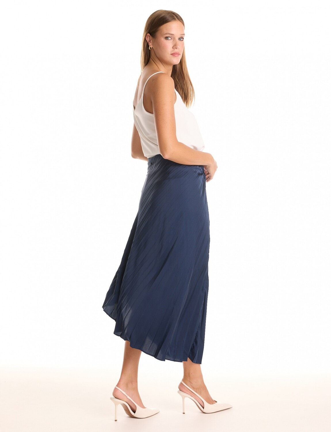 Falda en satén plisado, marca Adrienne Landau.