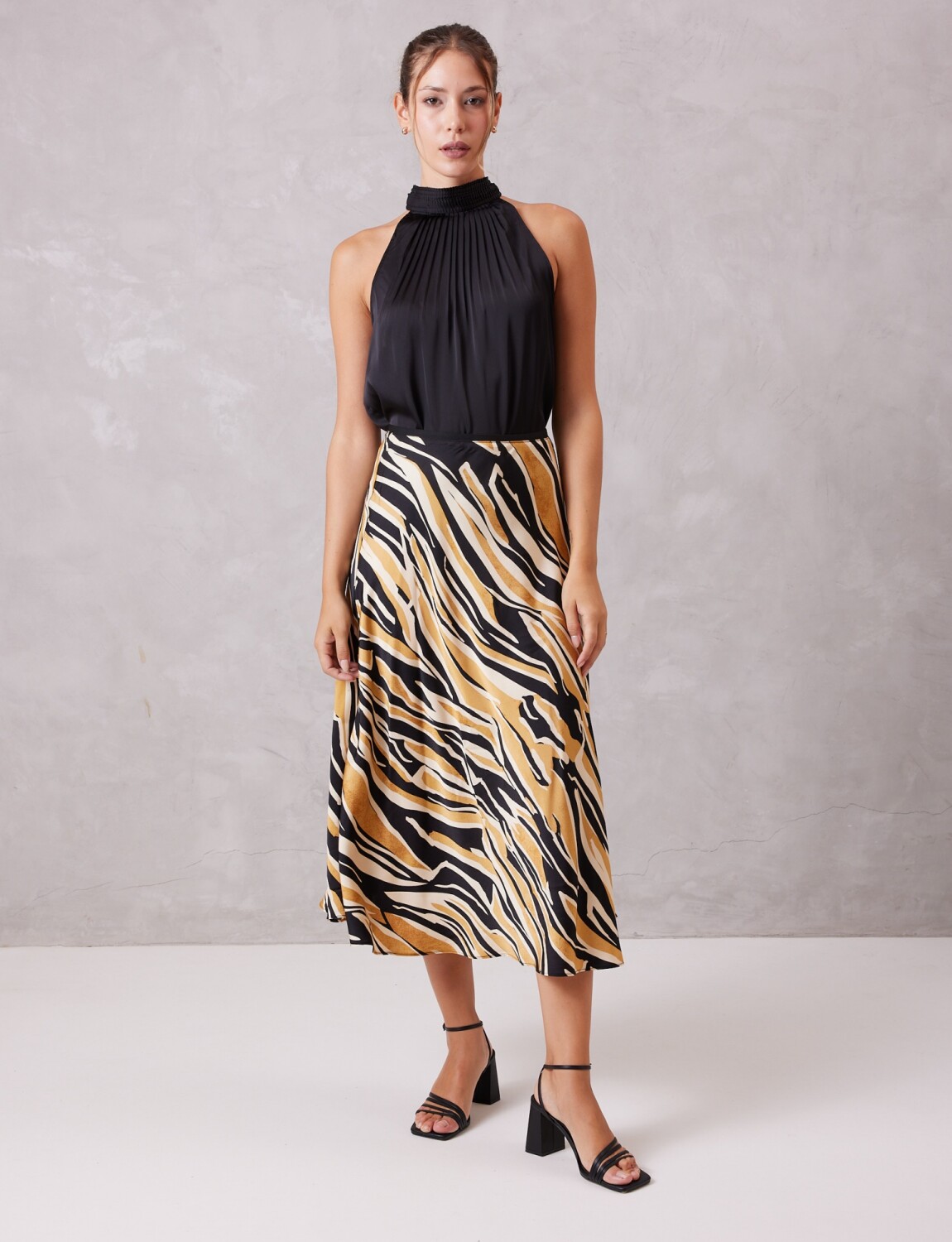 Falda estampada, marca Tahari.