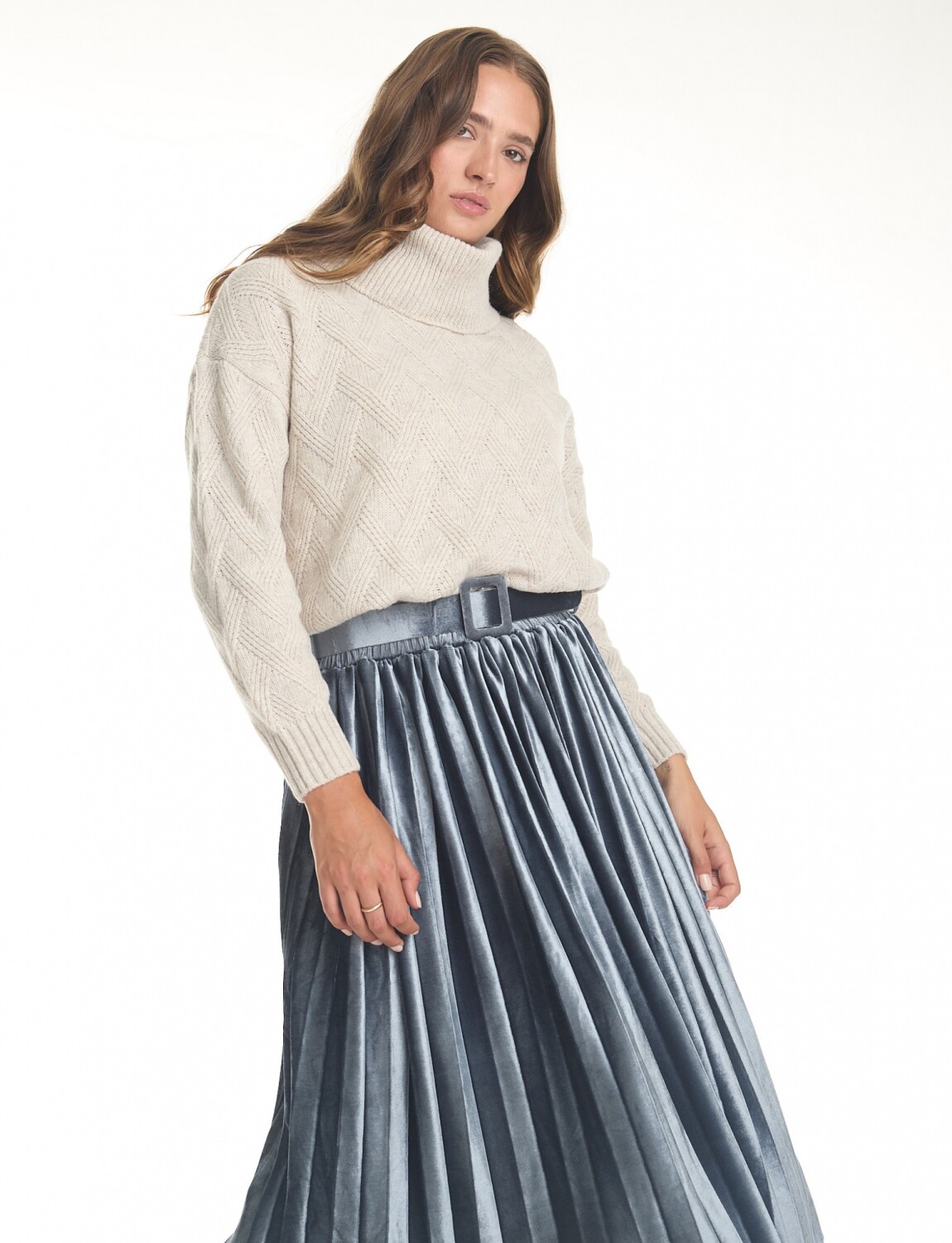 Falda en terciopelo plisado, marca Liv Los Angeles.