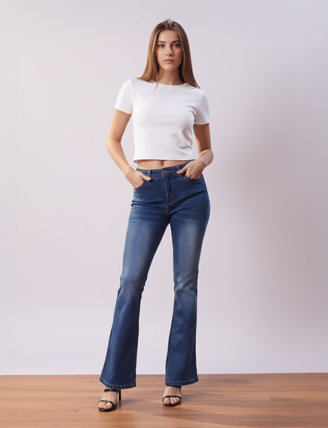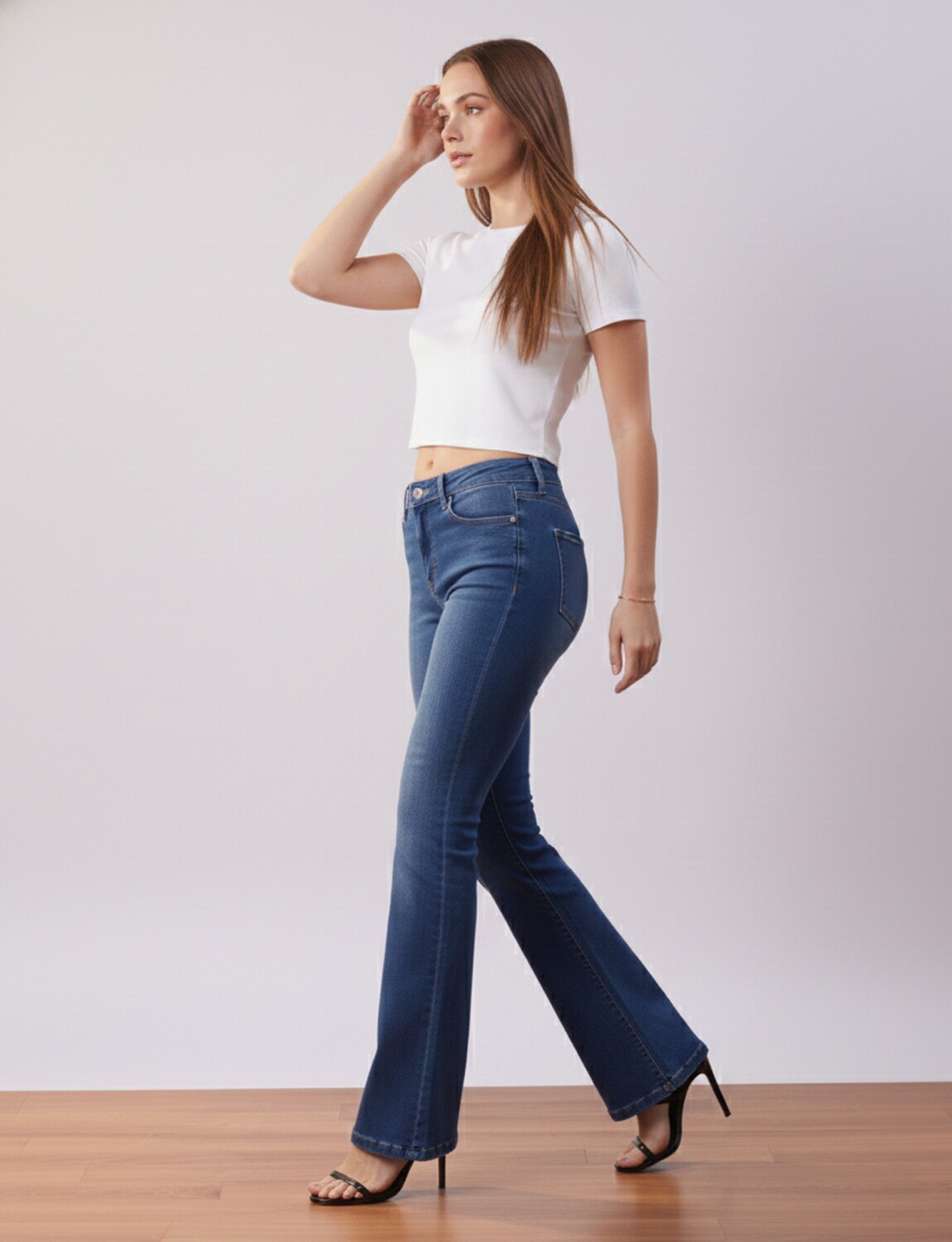 Modelo de tiro alto, pierna recta y terminacion bootcut.