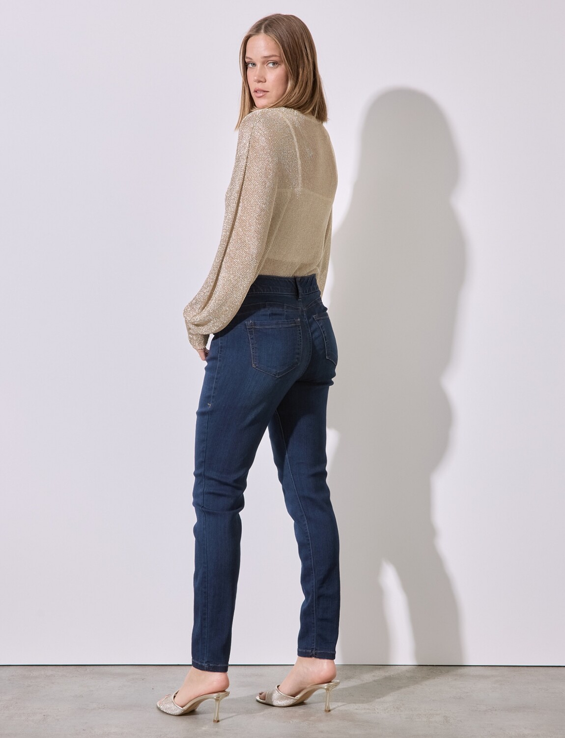 Corte skinny de calce ajustado desde la cadera hasta el tobillo.