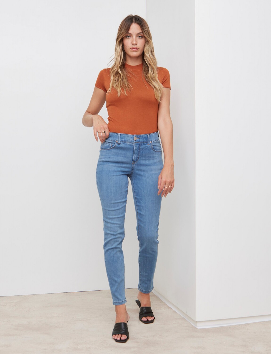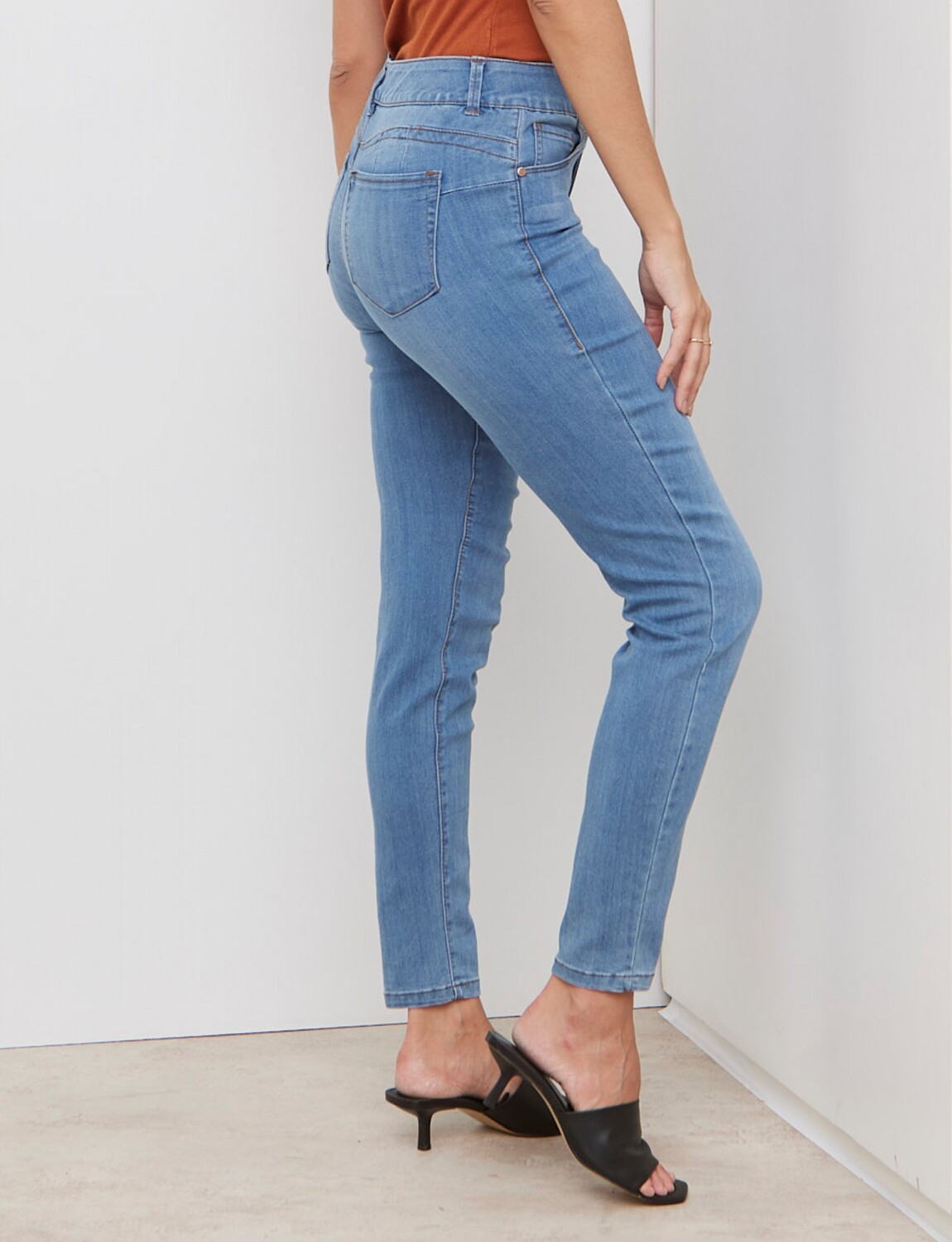 Corte skinny de calce ajustado desde la cadera hasta el tobillo.