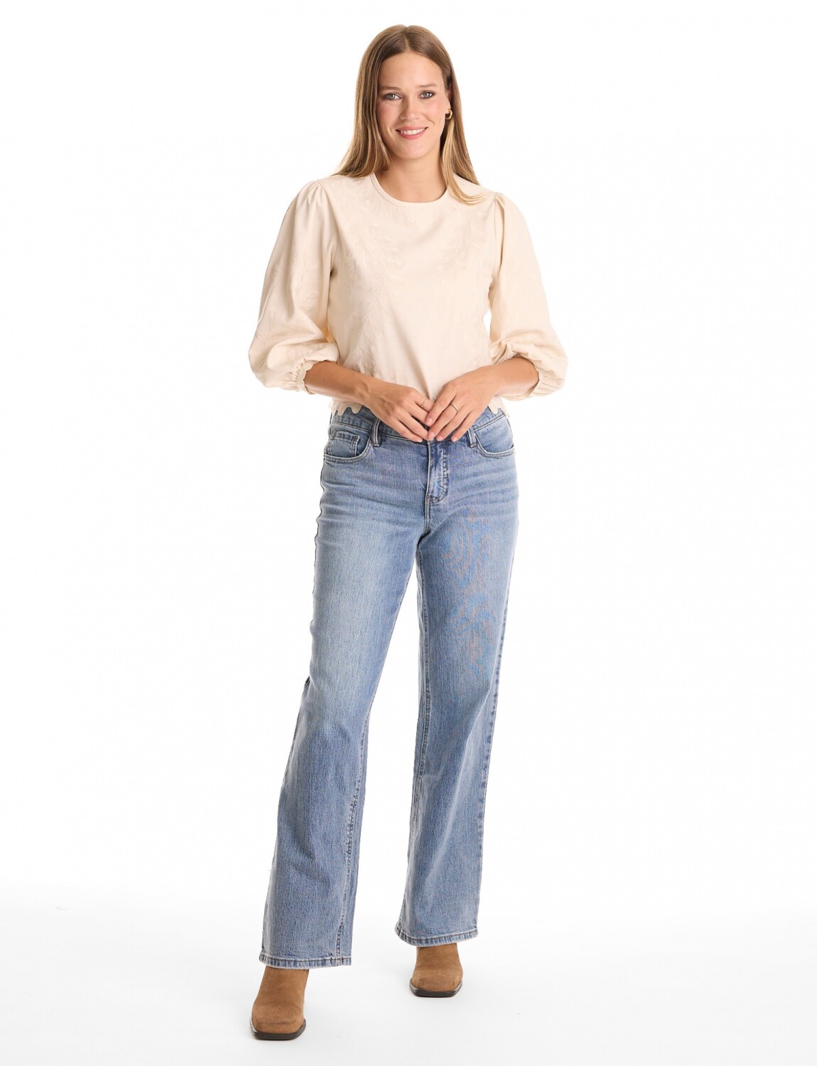 Fit de pierna ancha y recta que brinda comodidad y estilo.