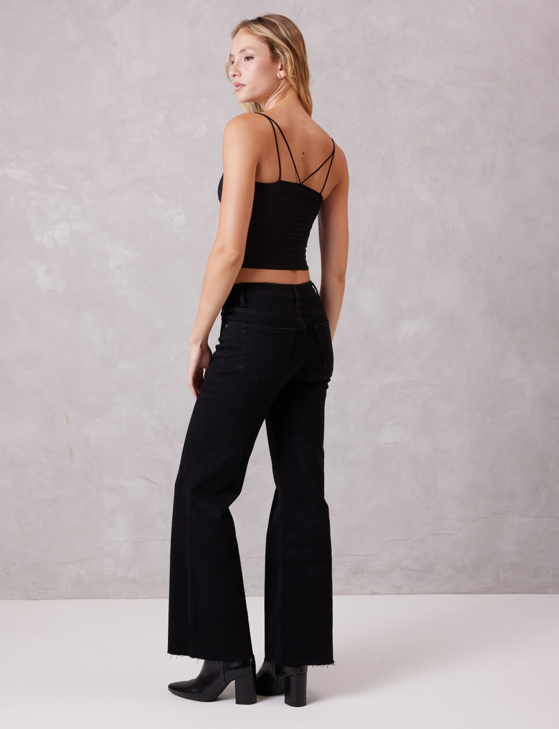 Pierna ancha desde la cadera hasta el ruedo, ofreciendo comodidad absoluta y un movimiento fluido al caminar.