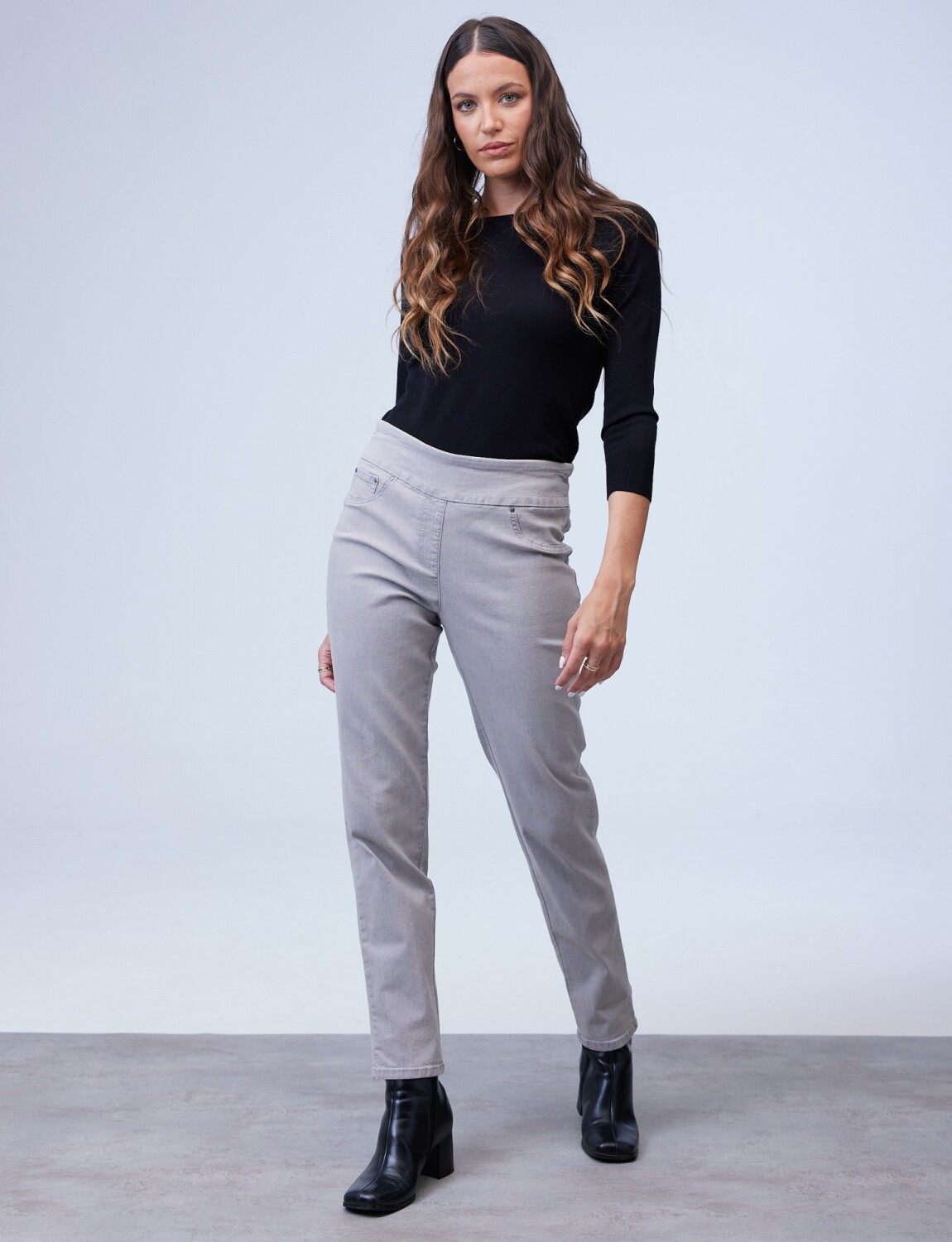 Silueta que acompaña la línea de la pierna de forma natural, ofreciendo un equilibrio perfecto entre un jean ajustado y recto.