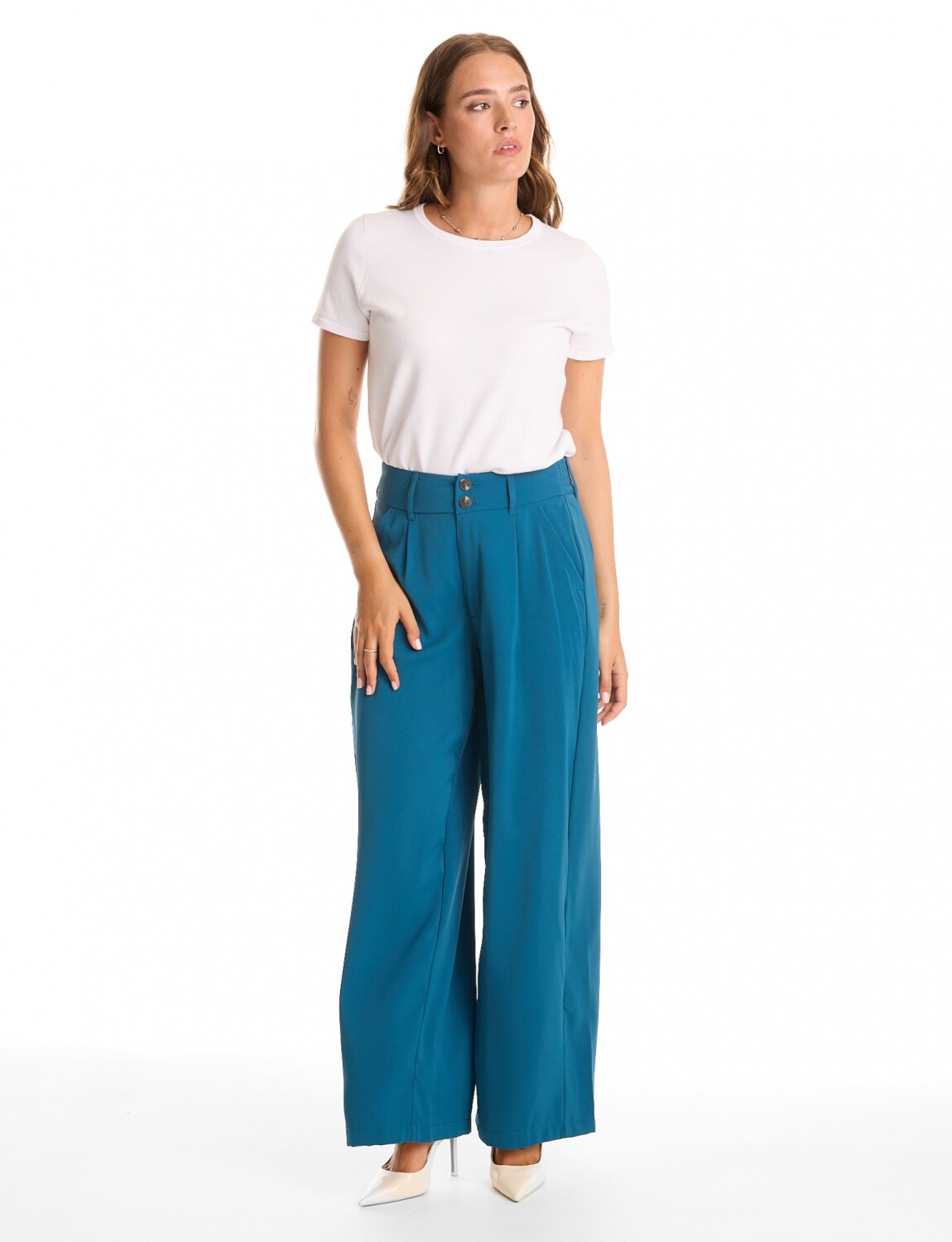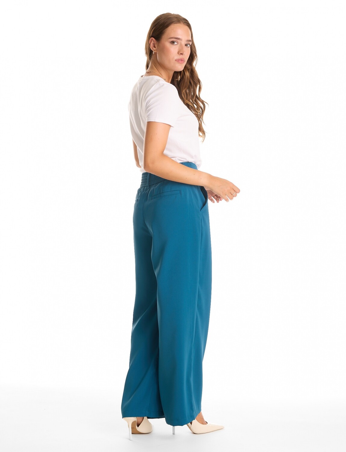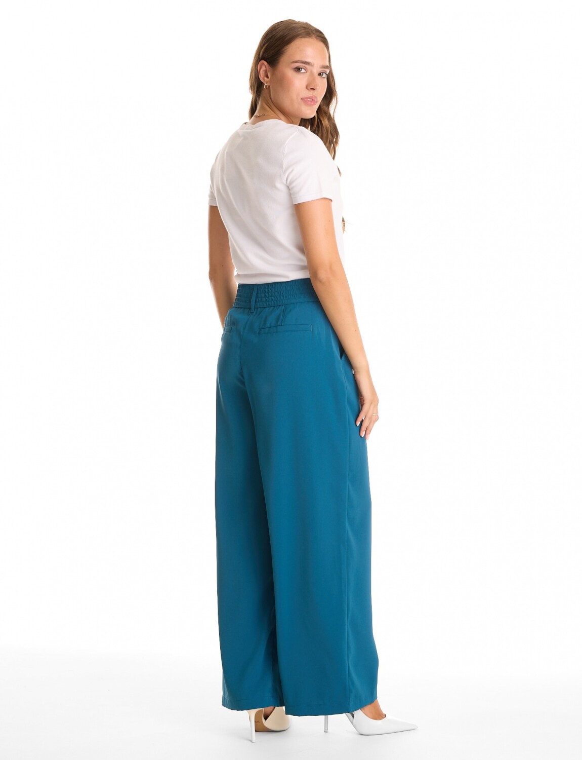 Palazzo Con Doble Botón & Cintura Elástica - Petroleo