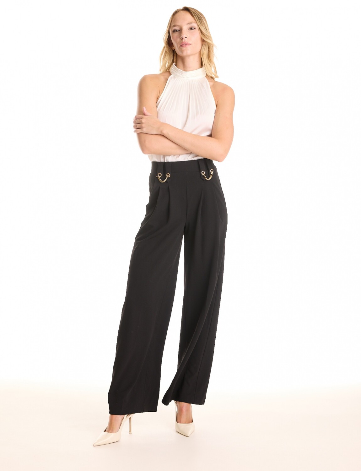 Modelo palazzo de pierna ancha y tiro alto que alarga la figura y aporta movimiento al caminar.