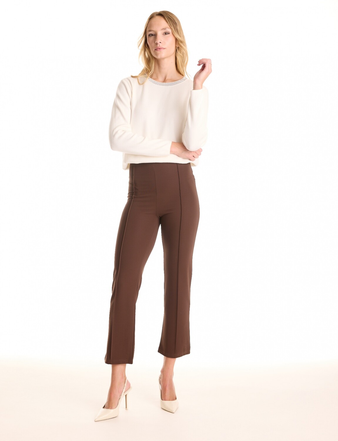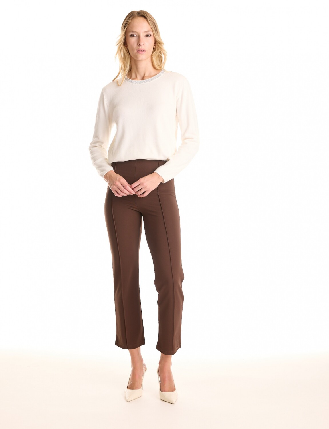 Pantalón confeccionado en tejido elastizado, marca Allie Rose.