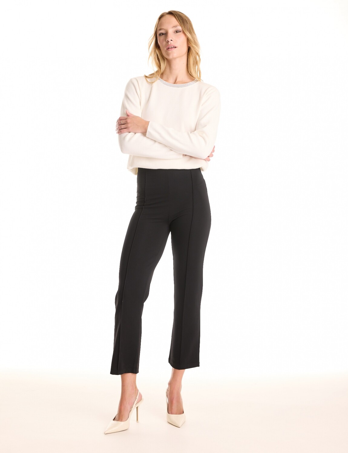 Pantalón confeccionado en tejido elastizado, marca Allie Rose.