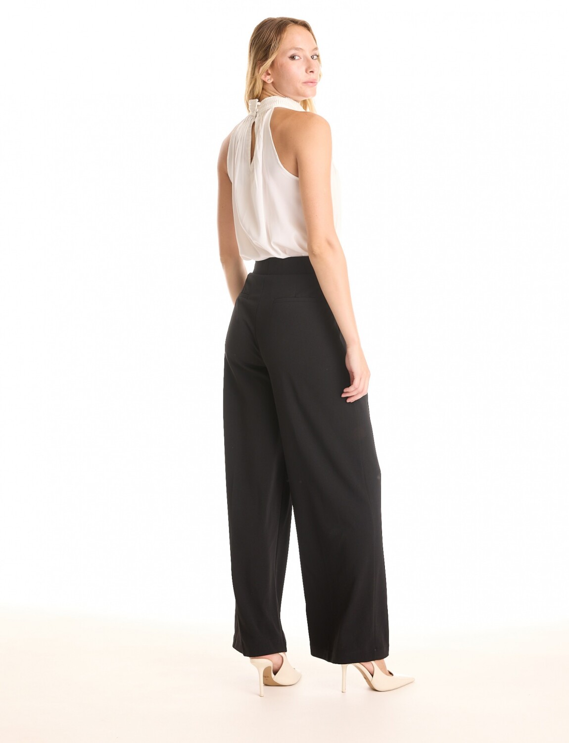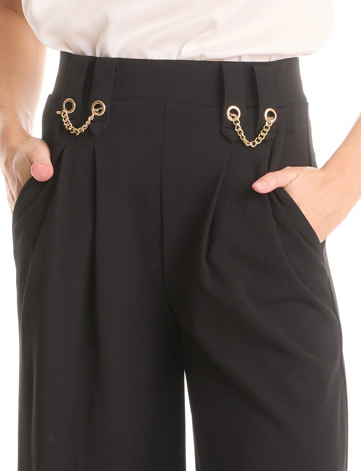 Pretina ancha elastizada con aplique de cadena en pasadores.