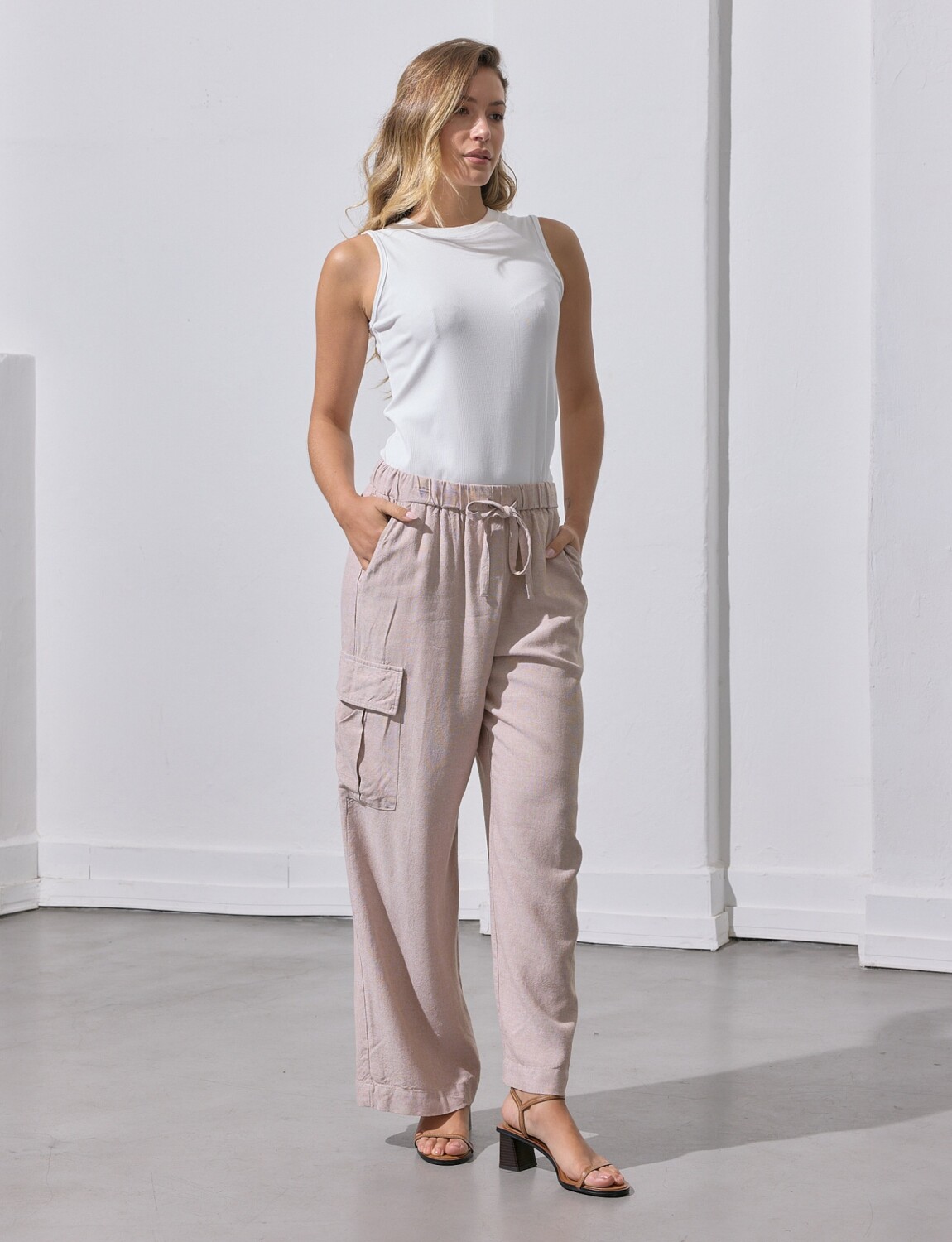 Delantera con bolsillos, lateral con bolsillo cargo.