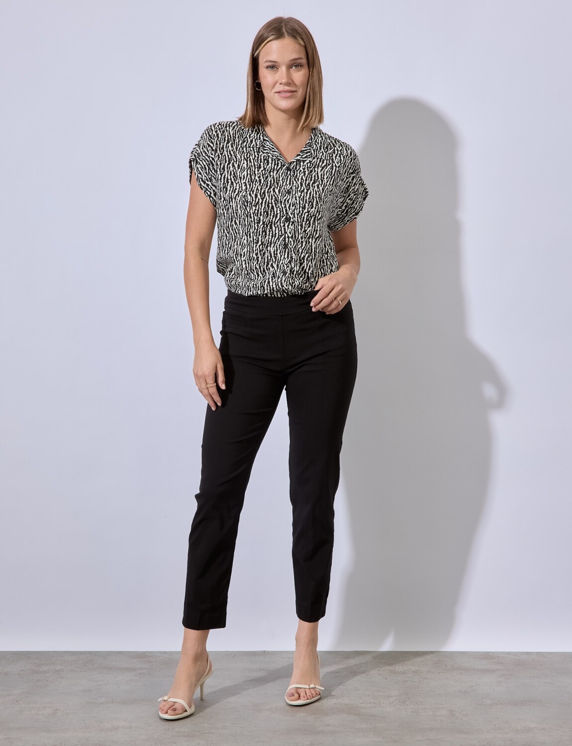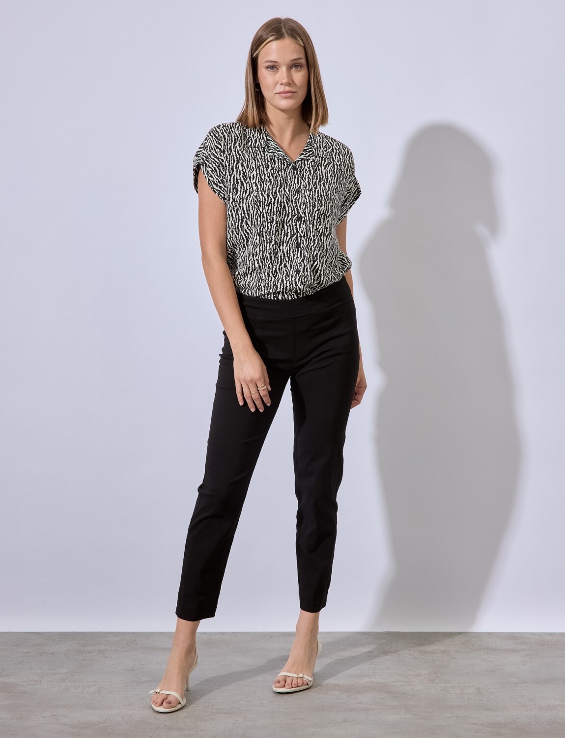 Pantalón recto en gabardina elastizada, marca Zac & Rachel.