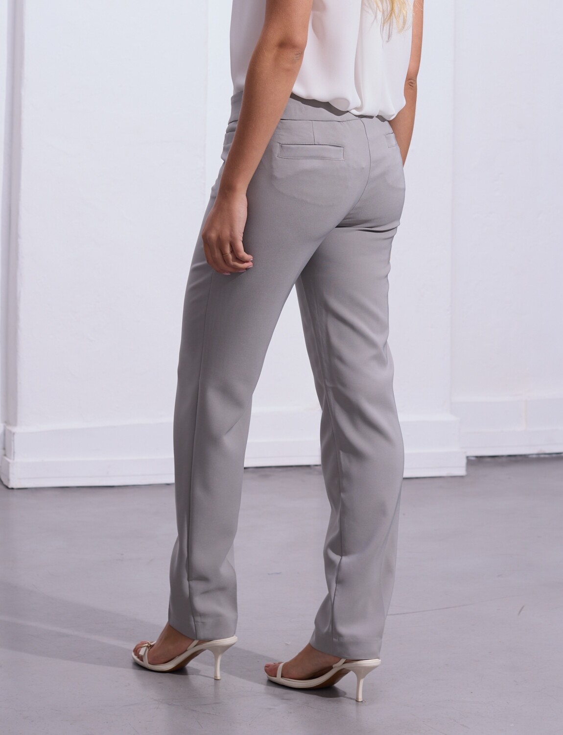 Corte que sigue la línea de la pierna de forma entallada pero cómoda, terminando en un largo clásico al tobillo.