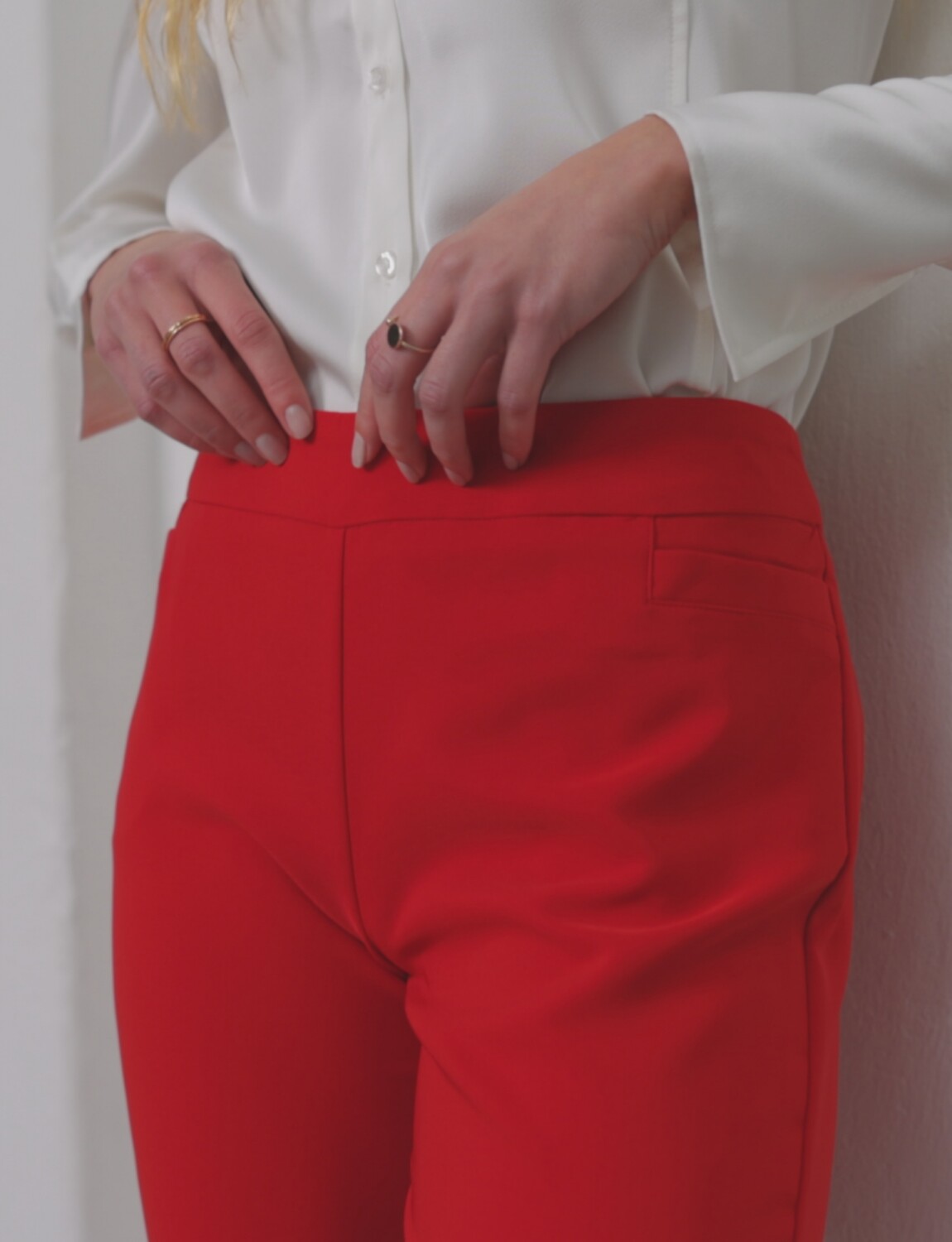 Corte que sigue la línea de la pierna de forma entallada pero cómoda, terminando en un largo clásico al tobillo.