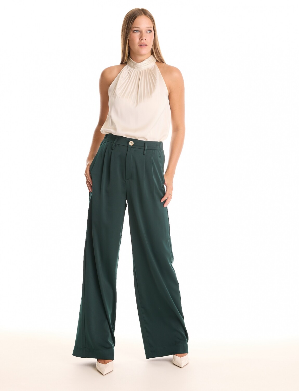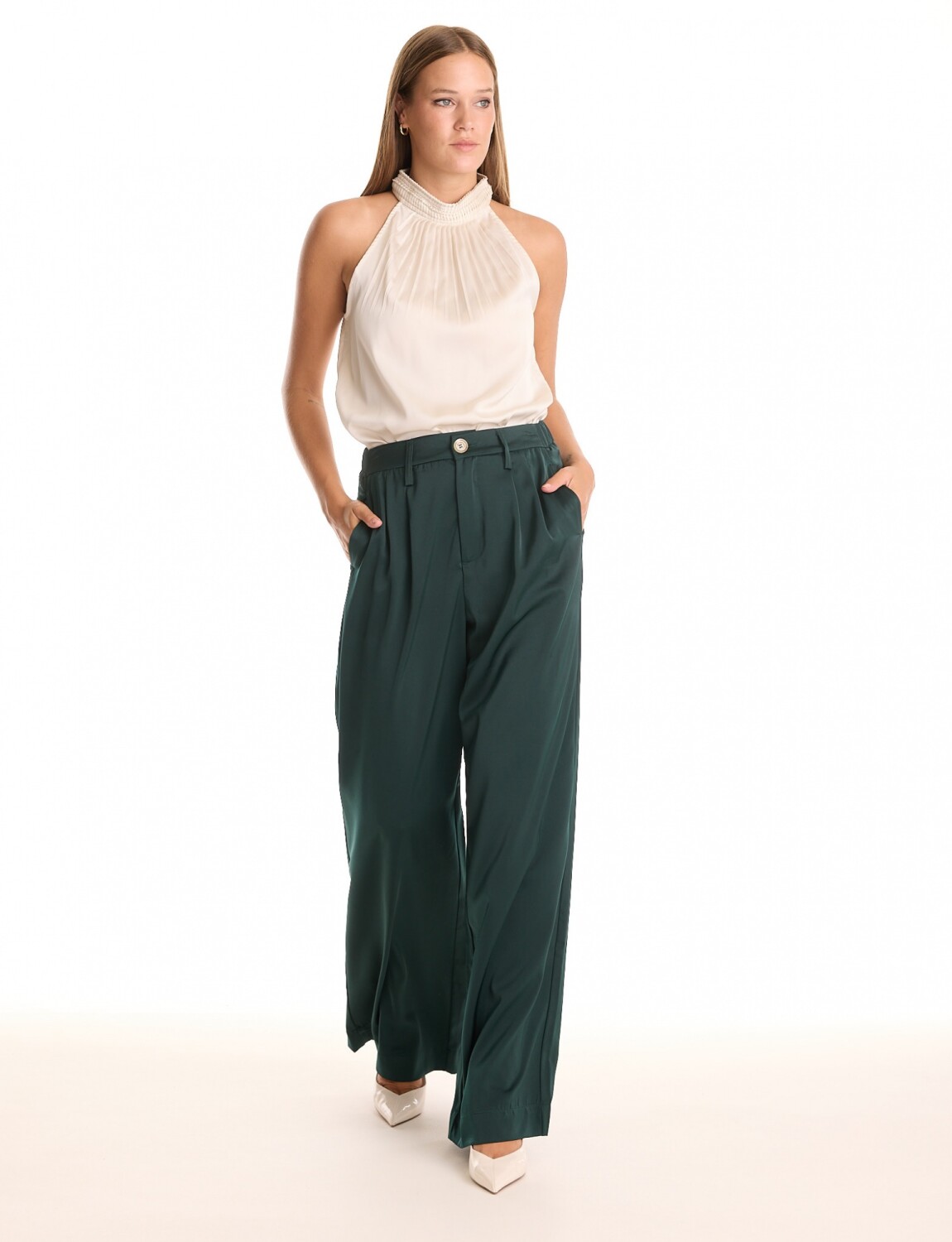 Pantalon Saten Wide - Verde