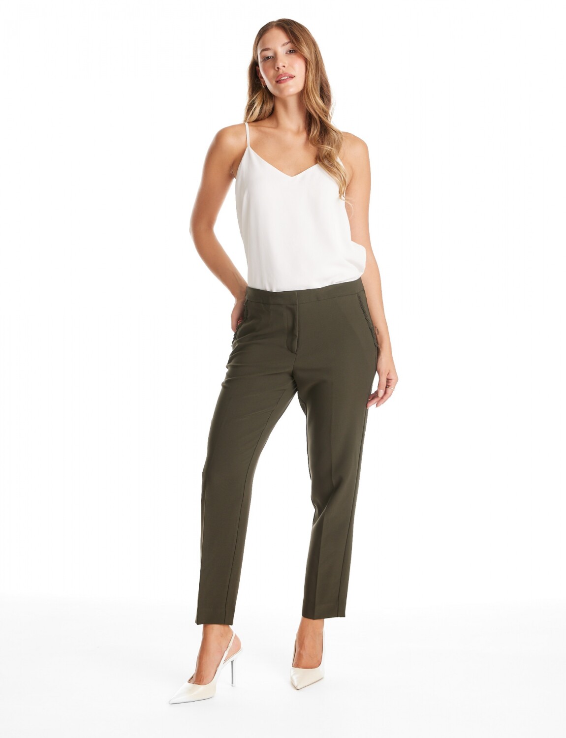 Pantalon Slim & Detalle Plisado - Oliva