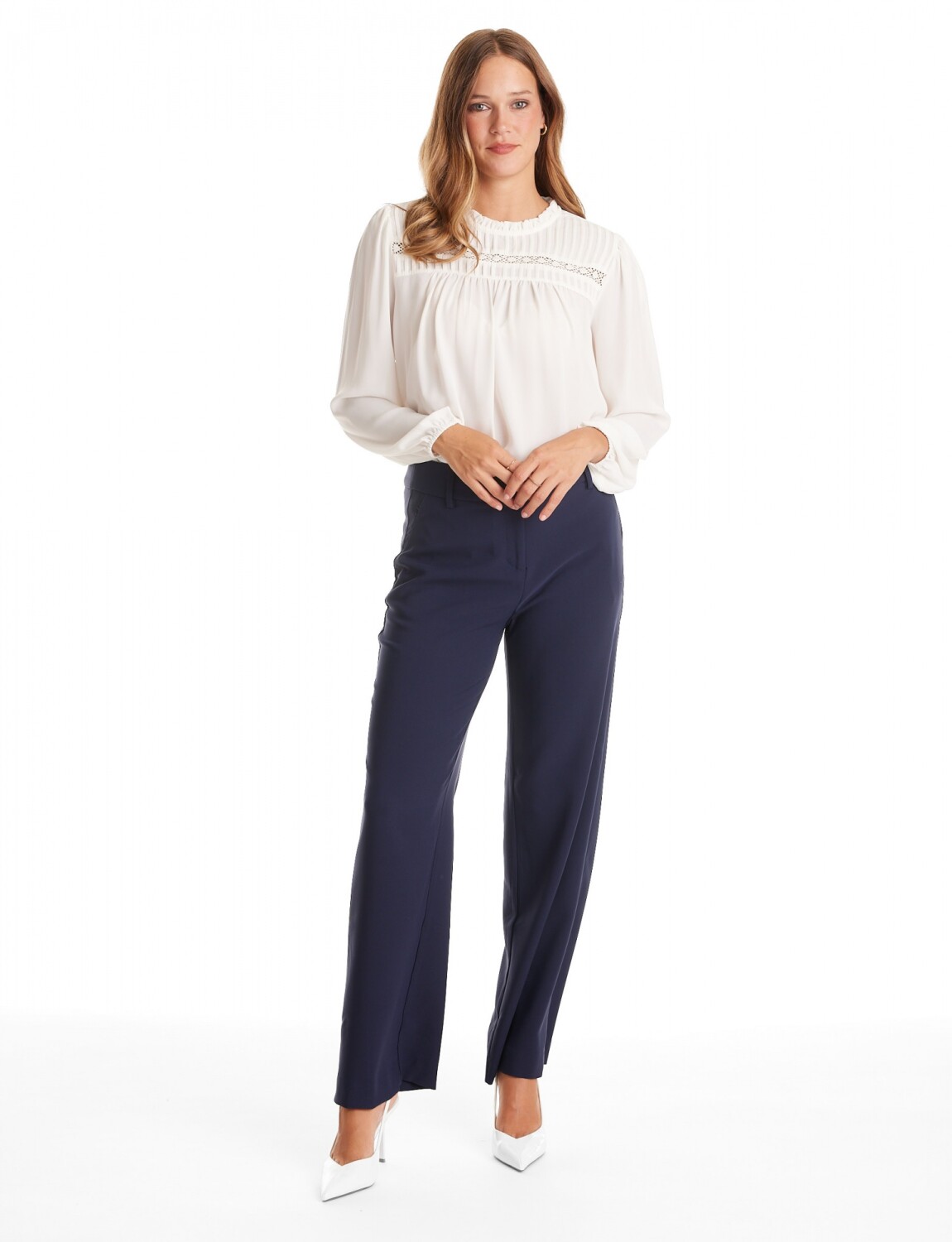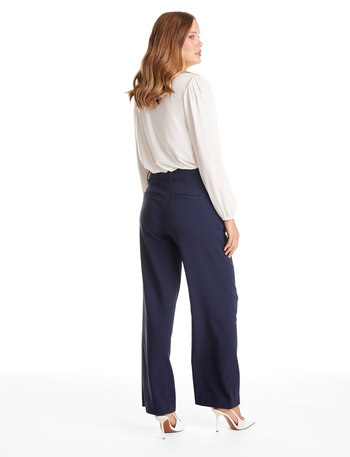 Pantalón sastrero de pierna ancha y tiro alto confeccionado en un tejido con caída.