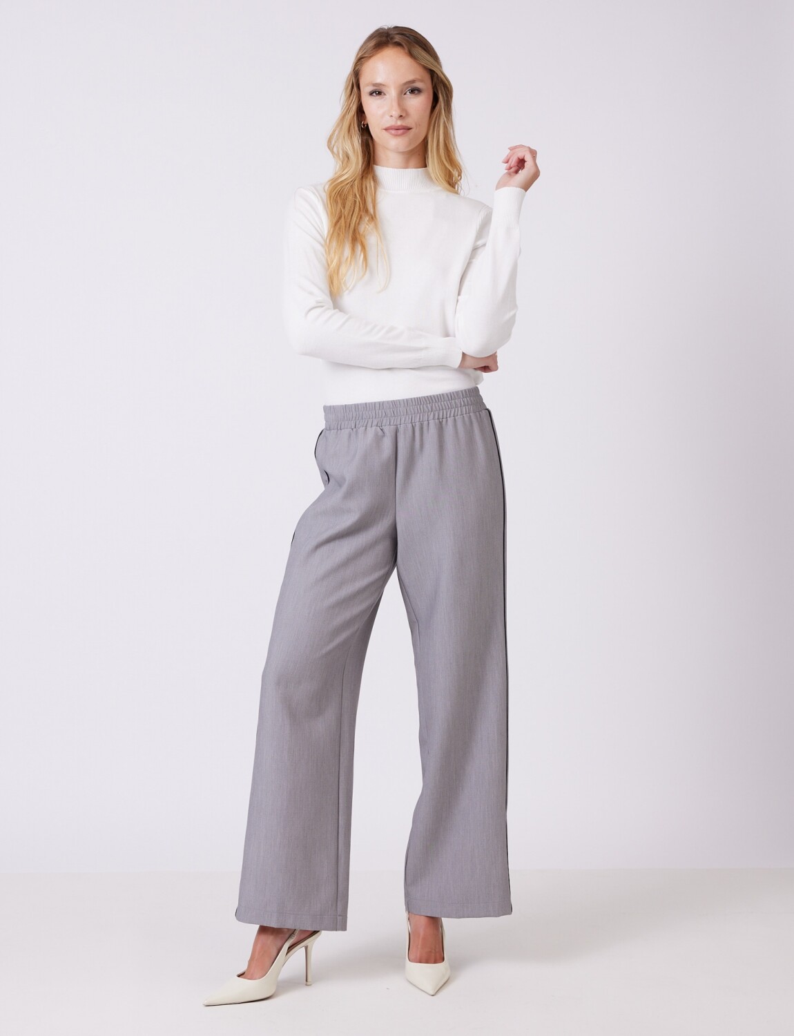 Pantalon Wide Leg Con Franjas Deportivas - Gris