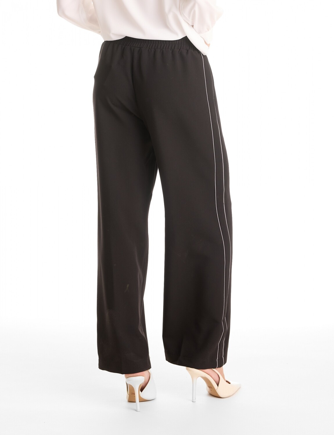 Pantalon Wide Leg Con Franjas Deportivas - Negro