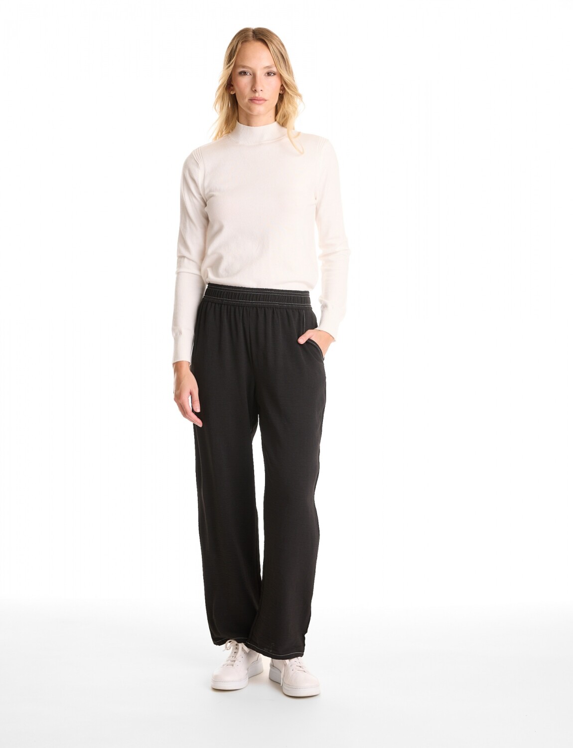 Pantalón en crepe fluido, marca Ninety.