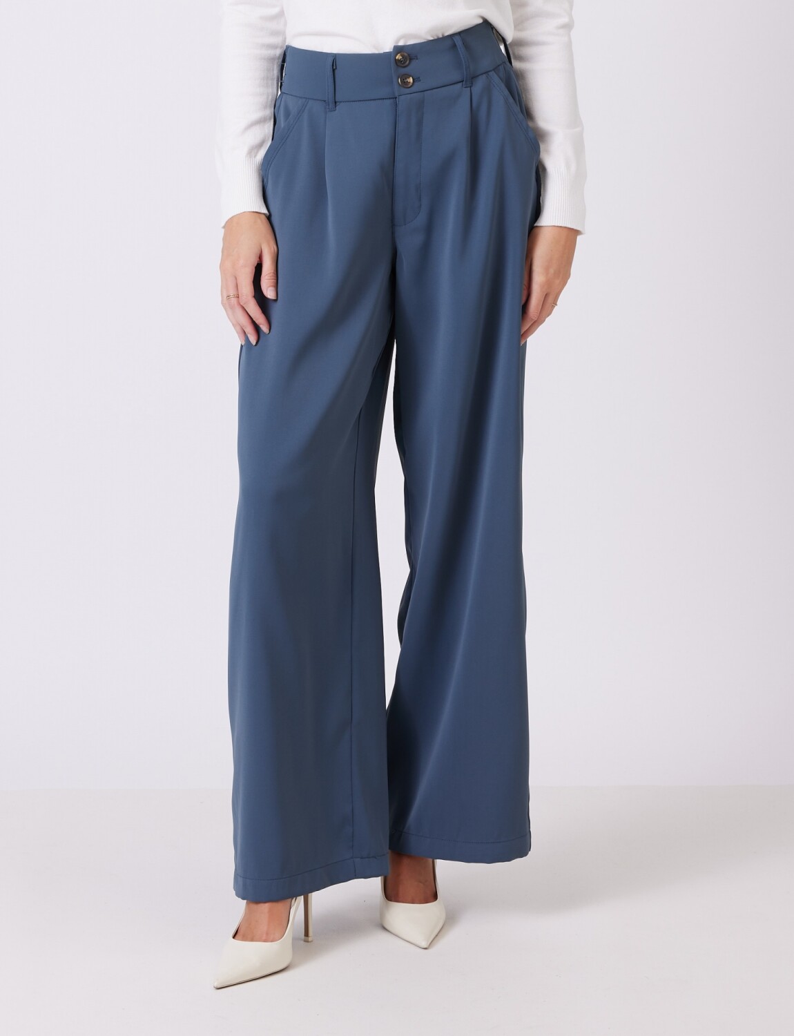 Pantalon Wide Leg - Gris Azulado