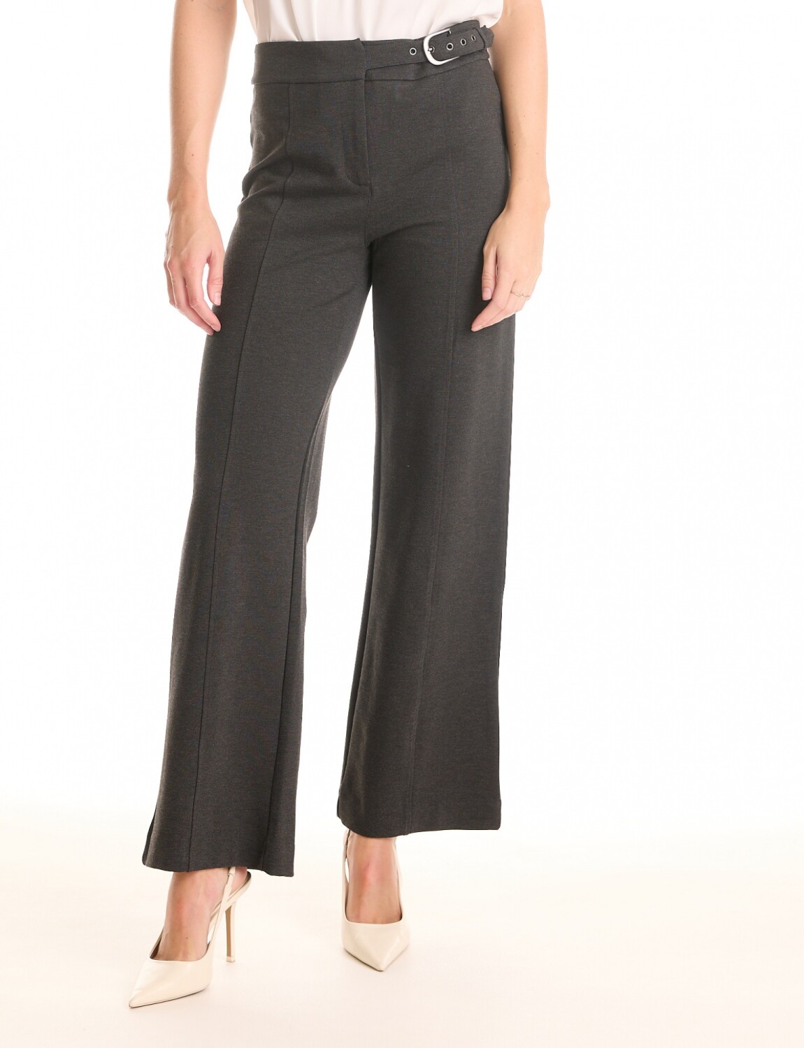 Pantalon Wide Leg Pretina Prolongada - Gris Oscuro
