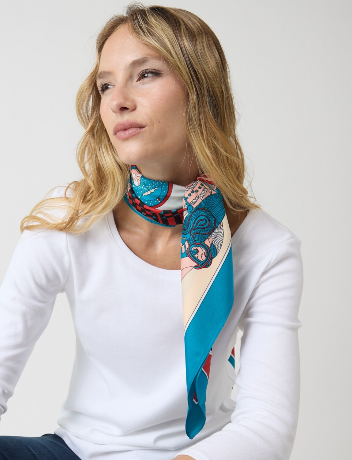 Pashmina en satén estampado, marca Barrington.