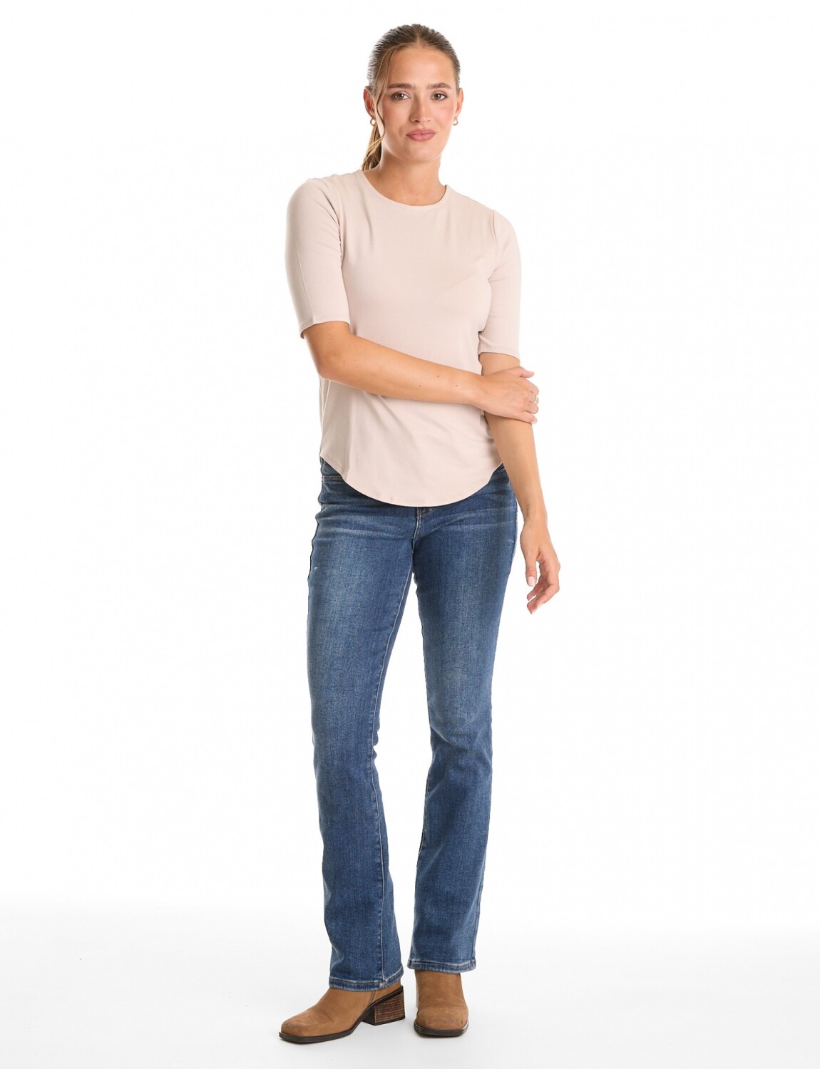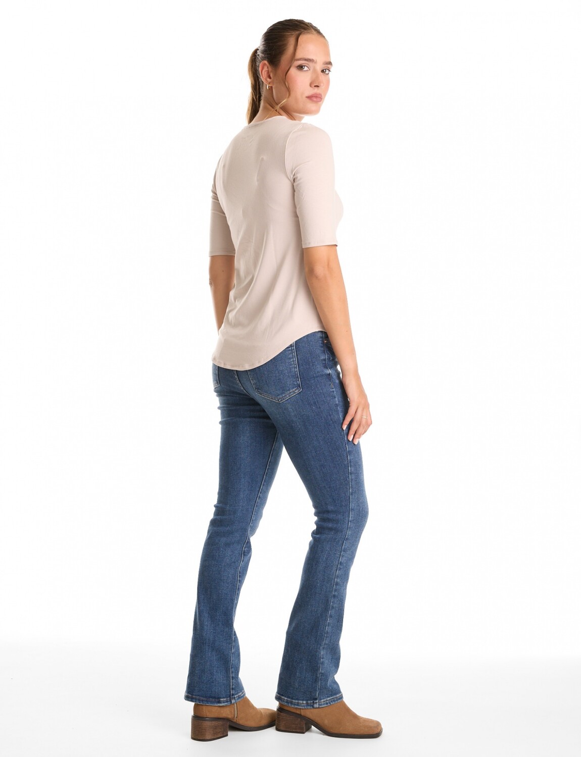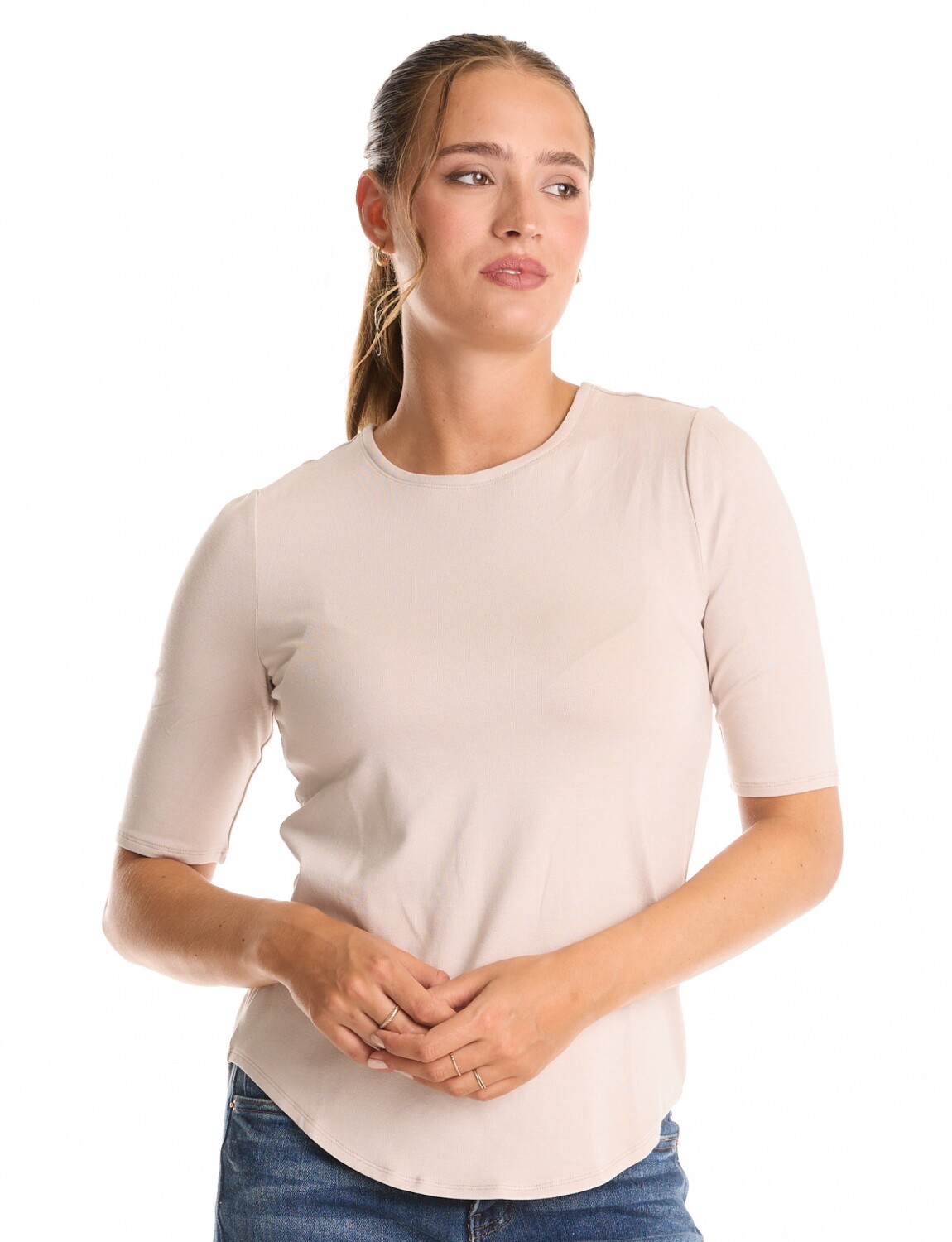 Ruedo redondeado.Composición: 95% Viscosa, 5% Elastano.