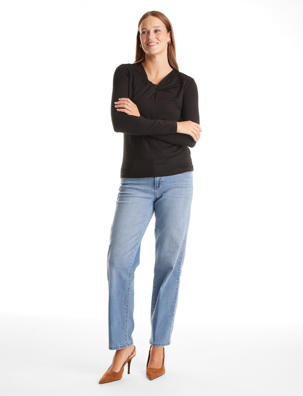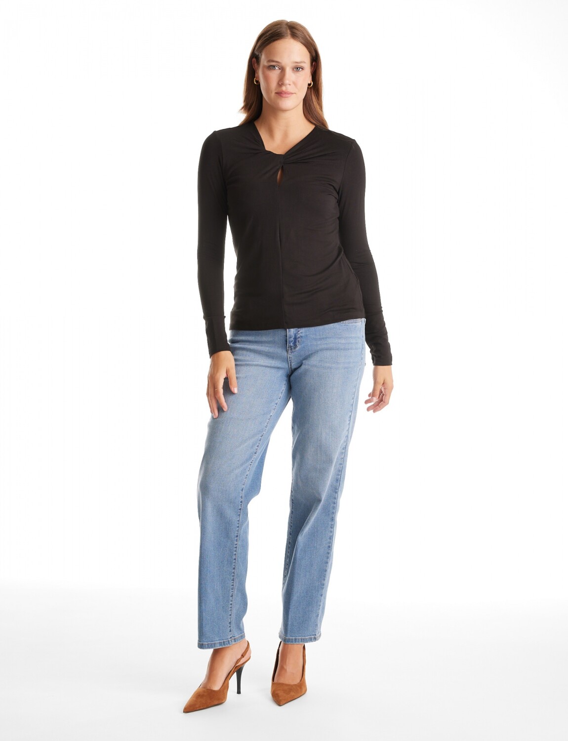 Escote en V entrelazado con abertura ojal.