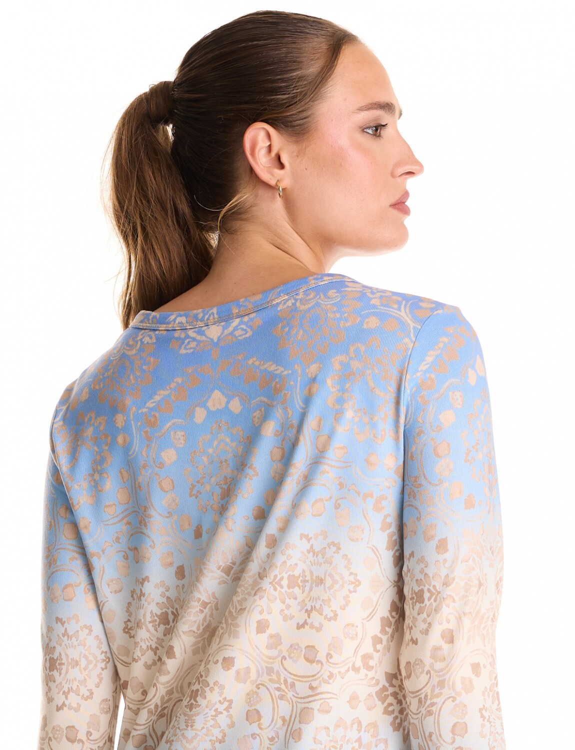 Escote redondo y manga larga.