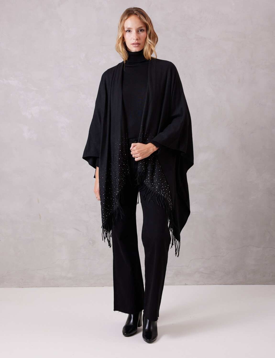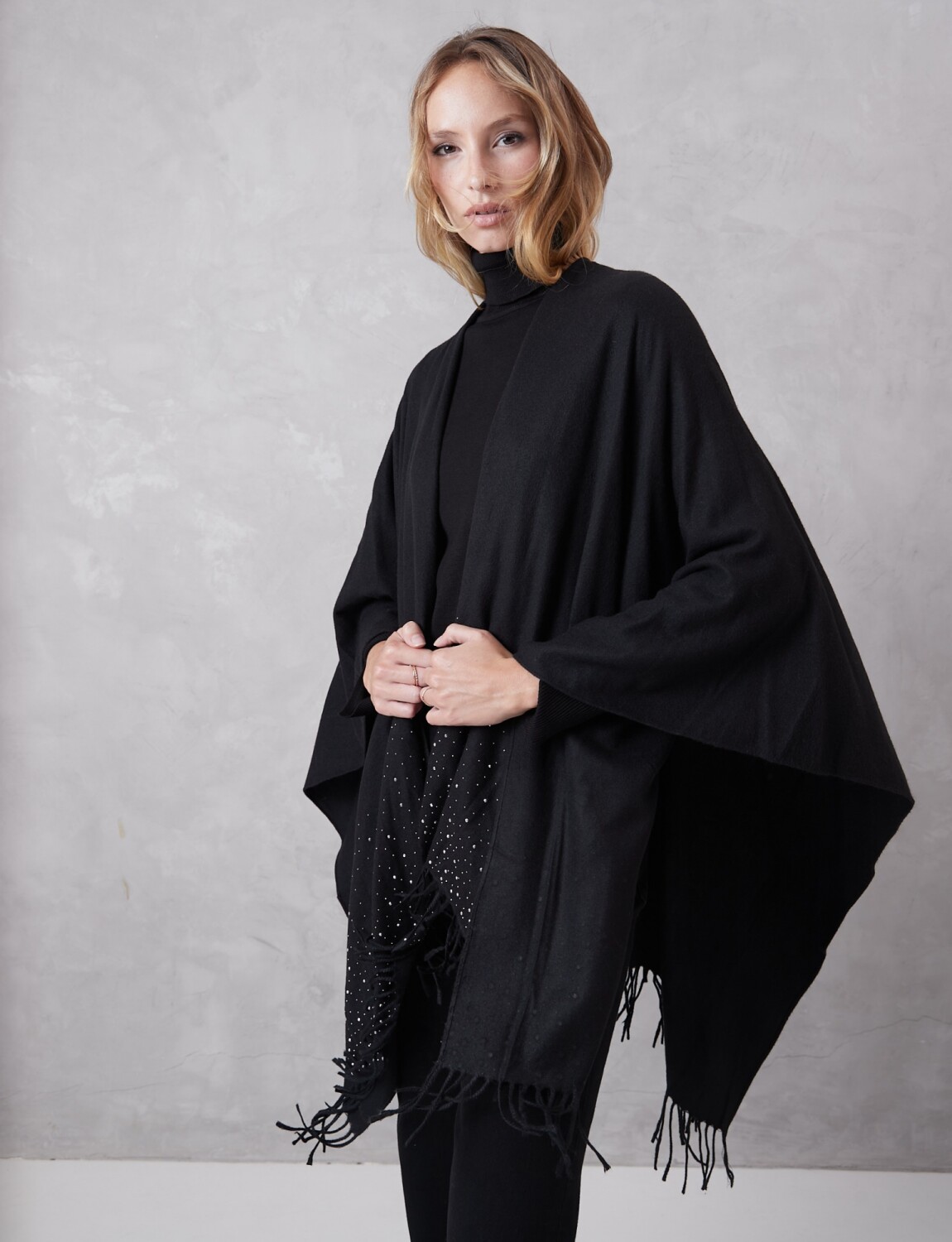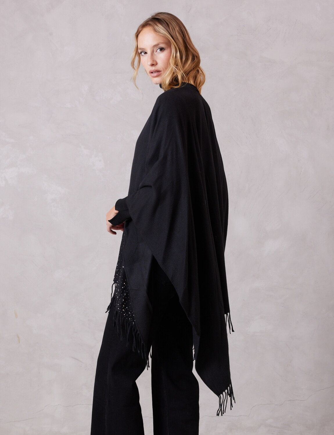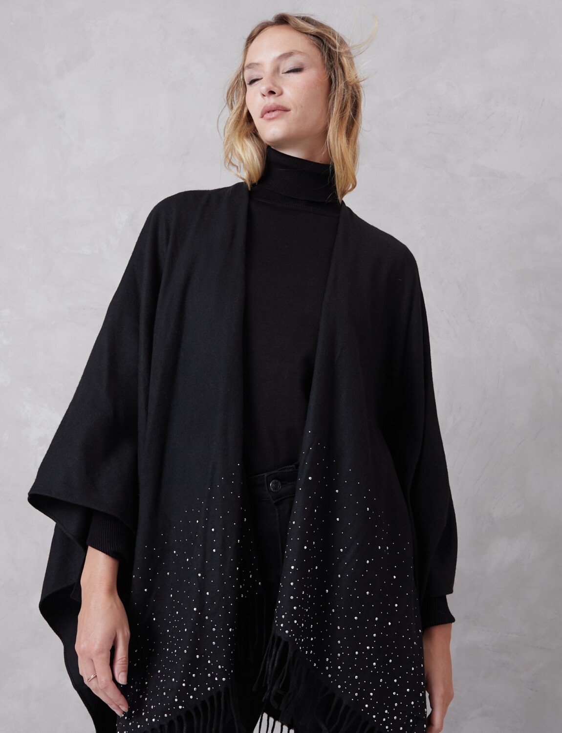 Ruana Brillos Y Perlas - Negro