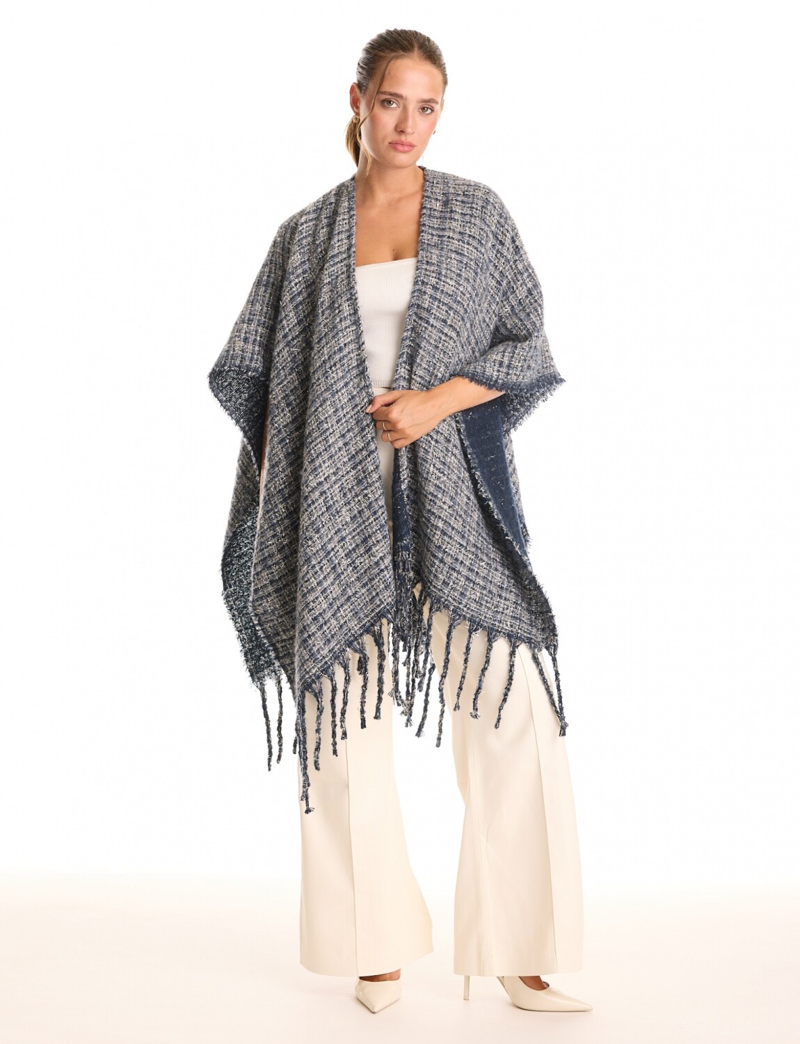 Ruana Tweed Flecos - Azul/multi