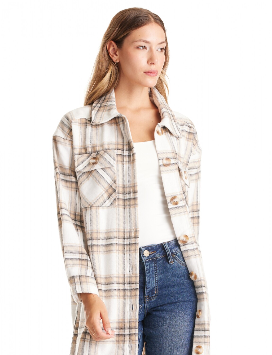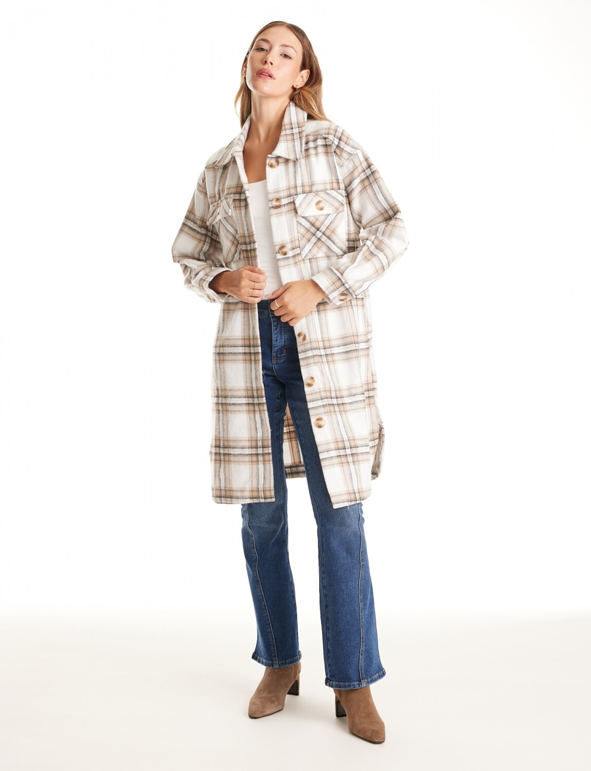 Sobrecamisa Larga Cuadros - Multi/beige