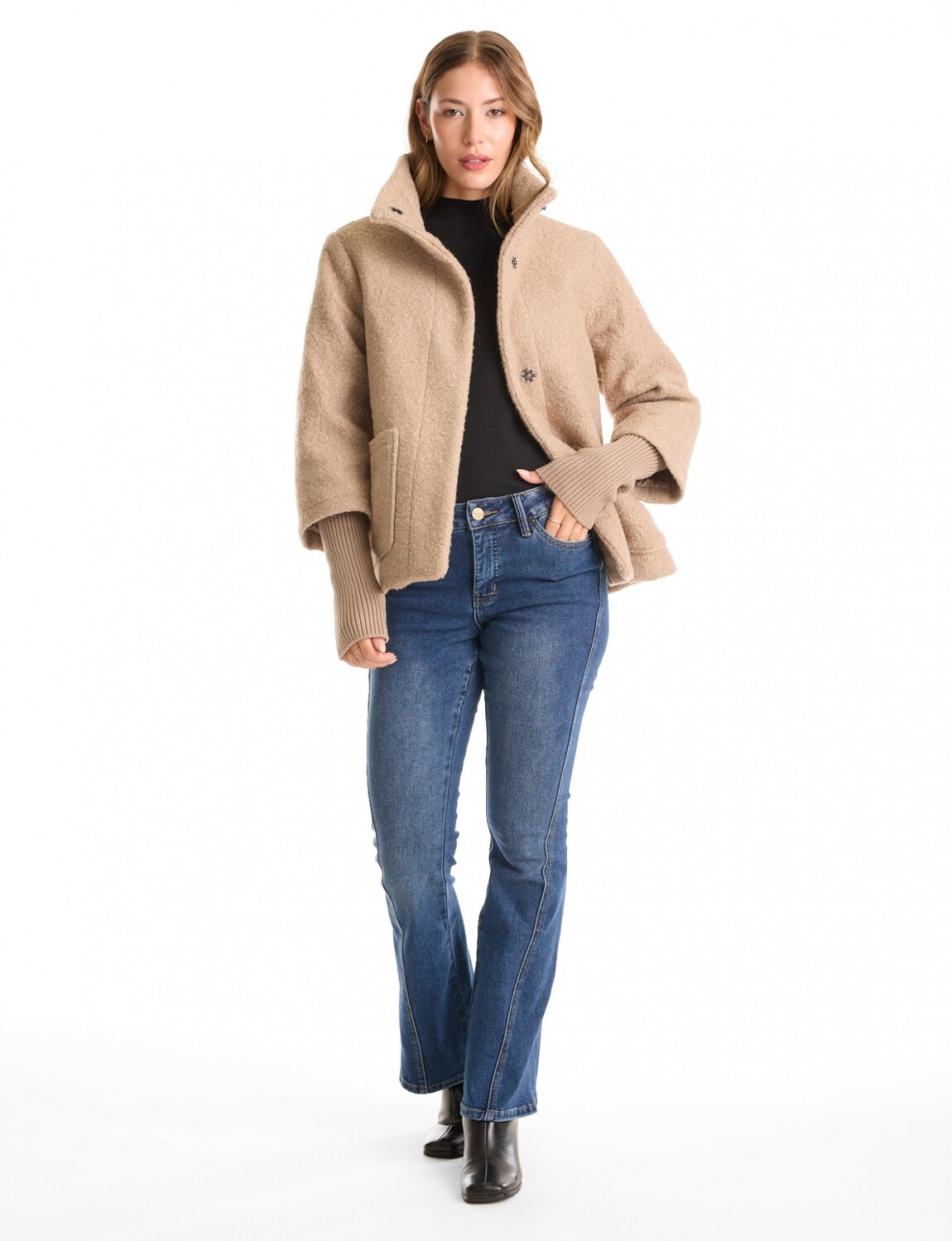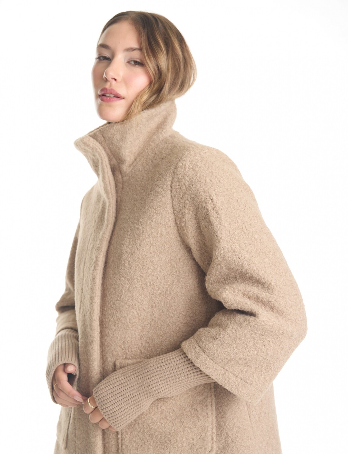 Tapado confeccionado en tejido boucle con una fuerte impronta de diseño y textura.