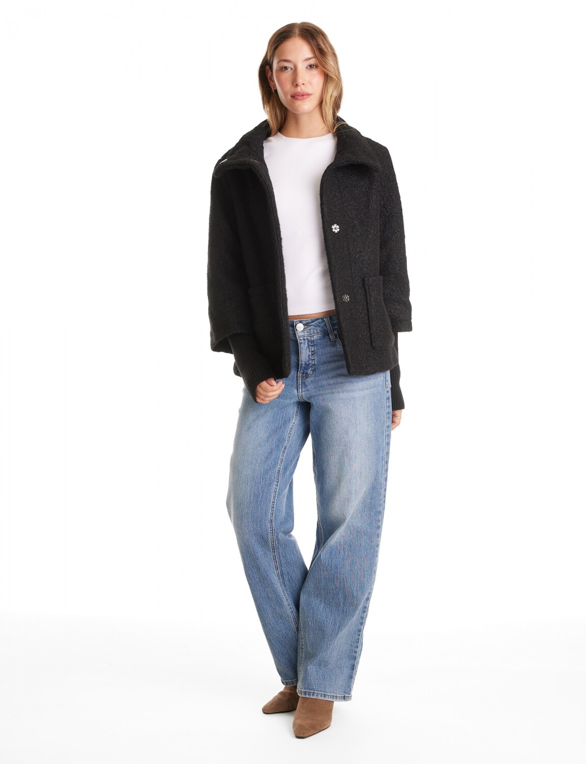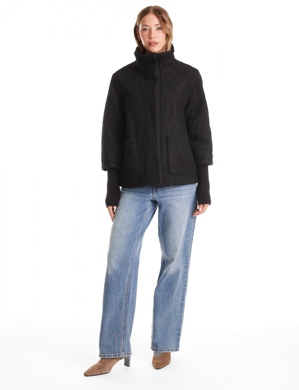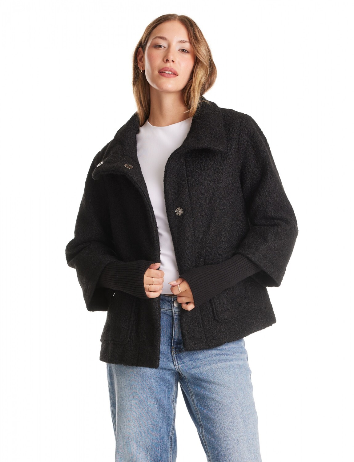 Tapado confeccionado en tejido boucle con una fuerte impronta de diseño y textura.