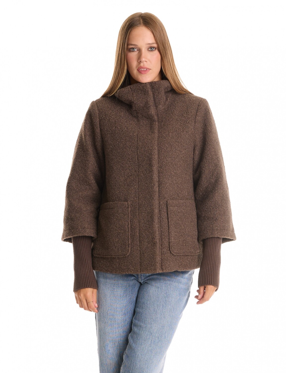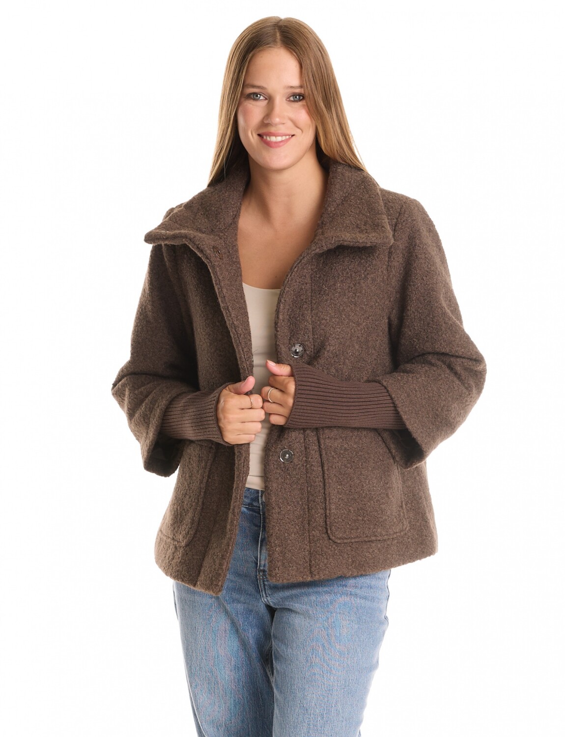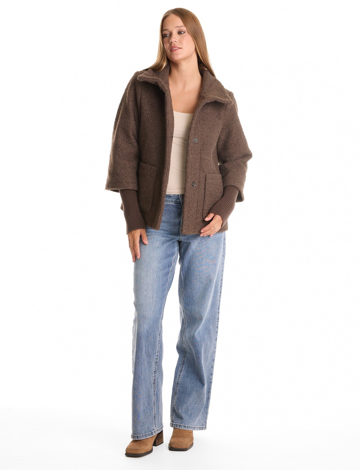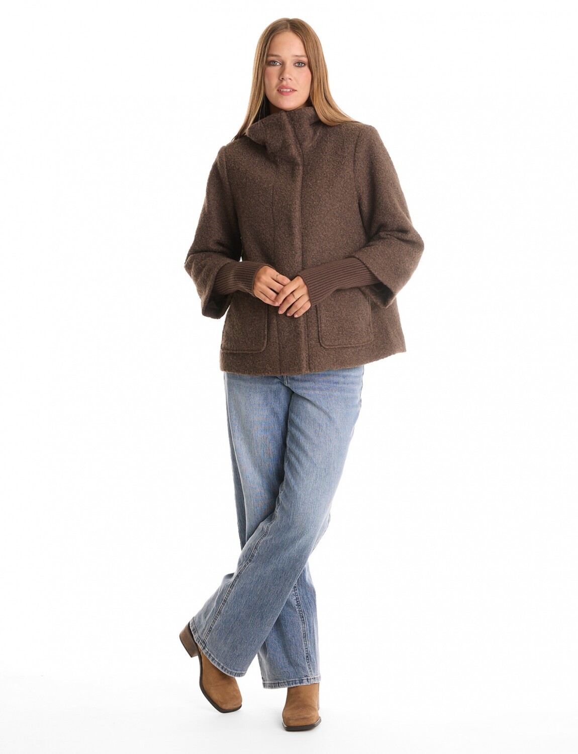 Tapado confeccionado en tejido boucle con una fuerte impronta de diseño y textura.