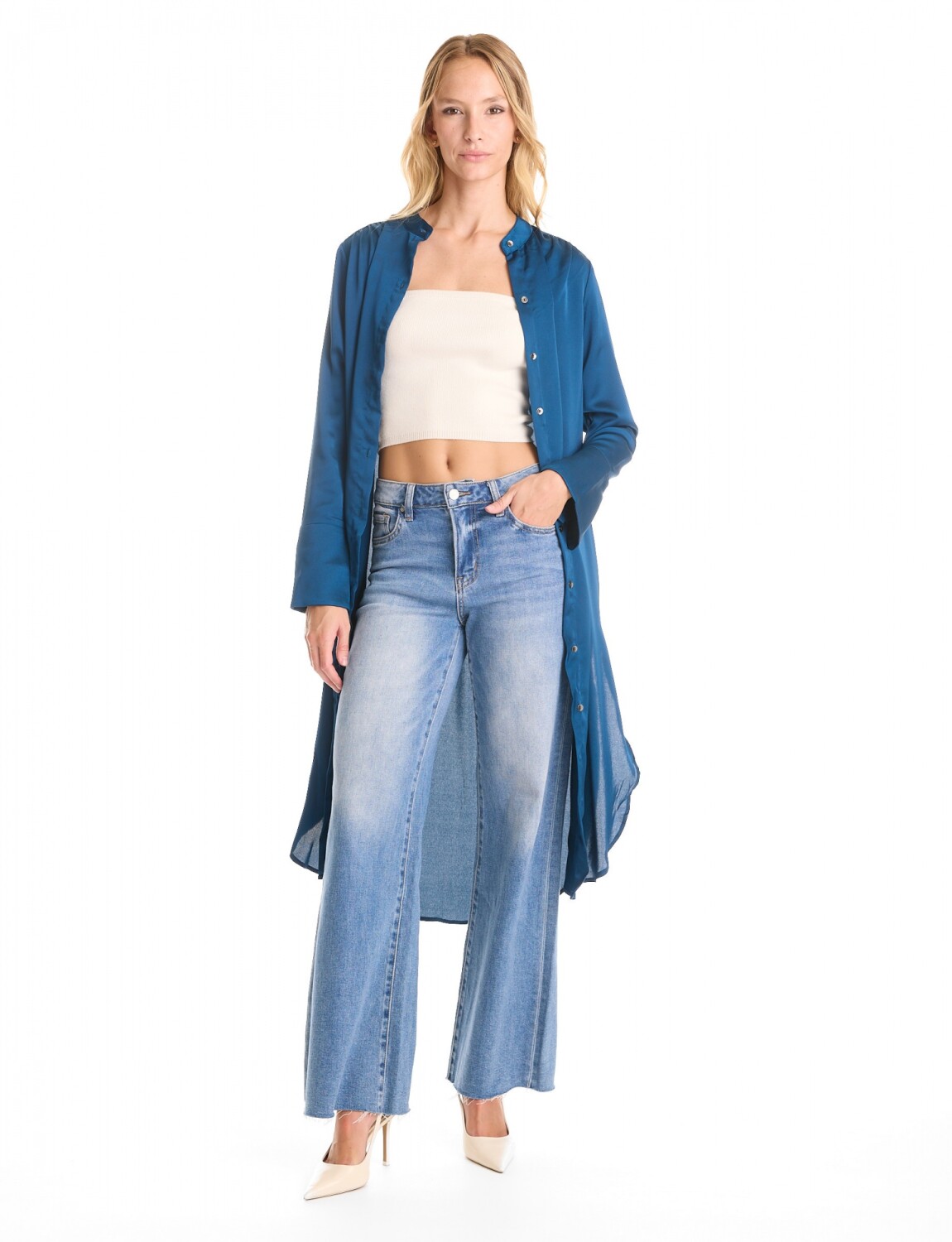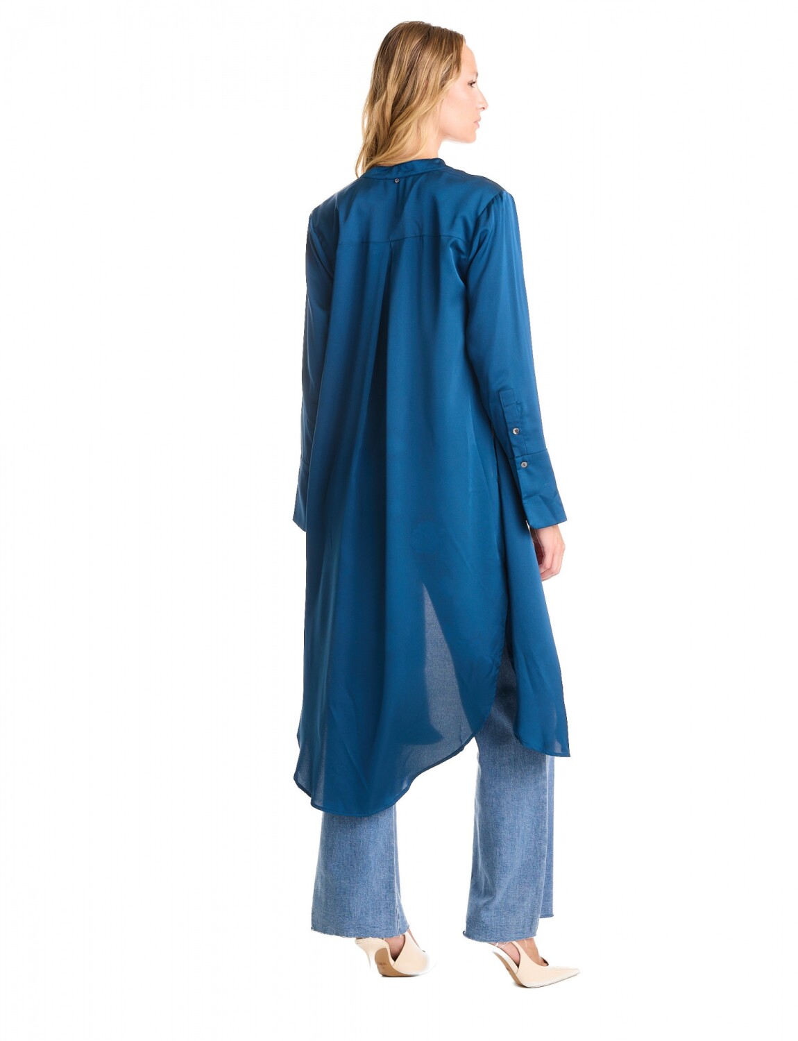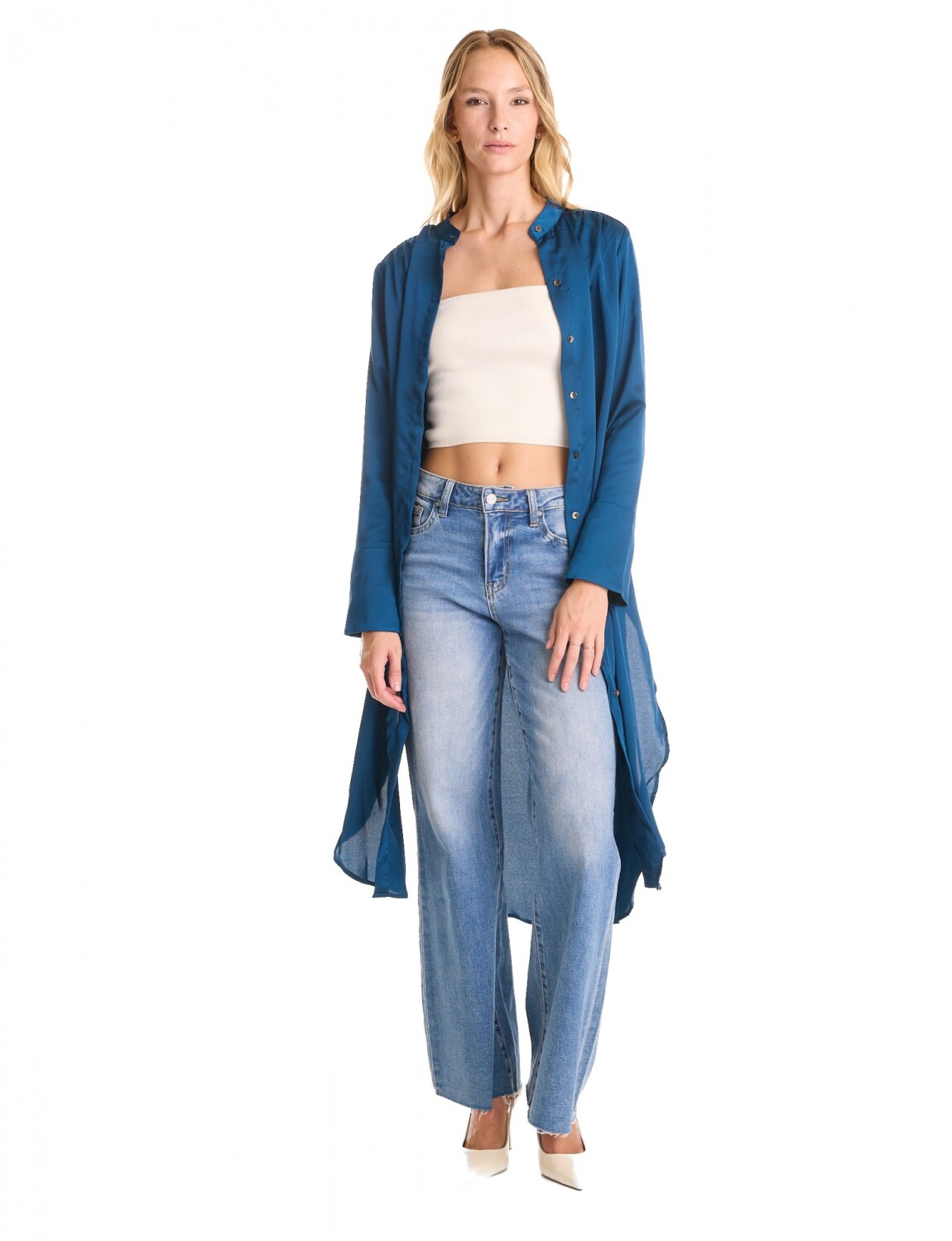 Túnica convertible satinada, marca Adrienne Landau.