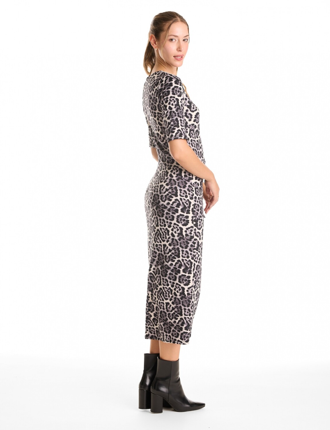 Vestido Animal Print Lazo - Gris/multi