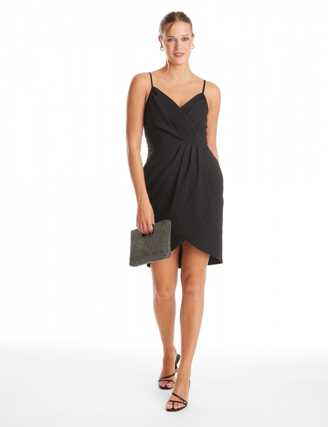Vestido Cruzado Drapeado - Negro