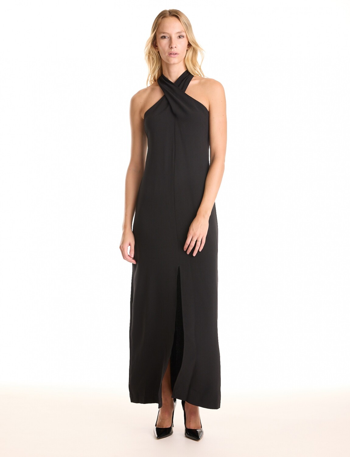 Vestido Cuello Cruzado - Negro