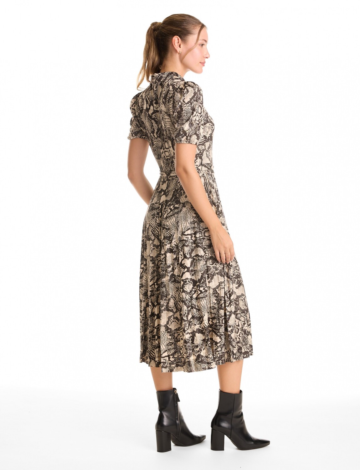 Vestido Midi Animal Print - Negro/beige