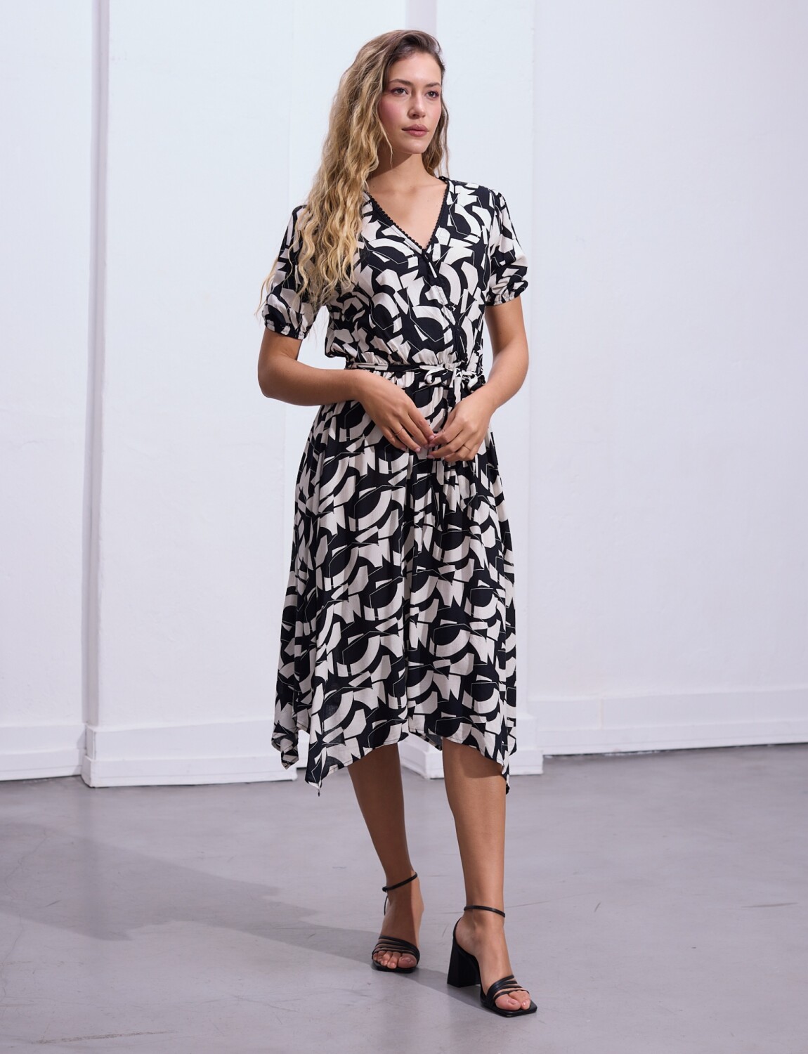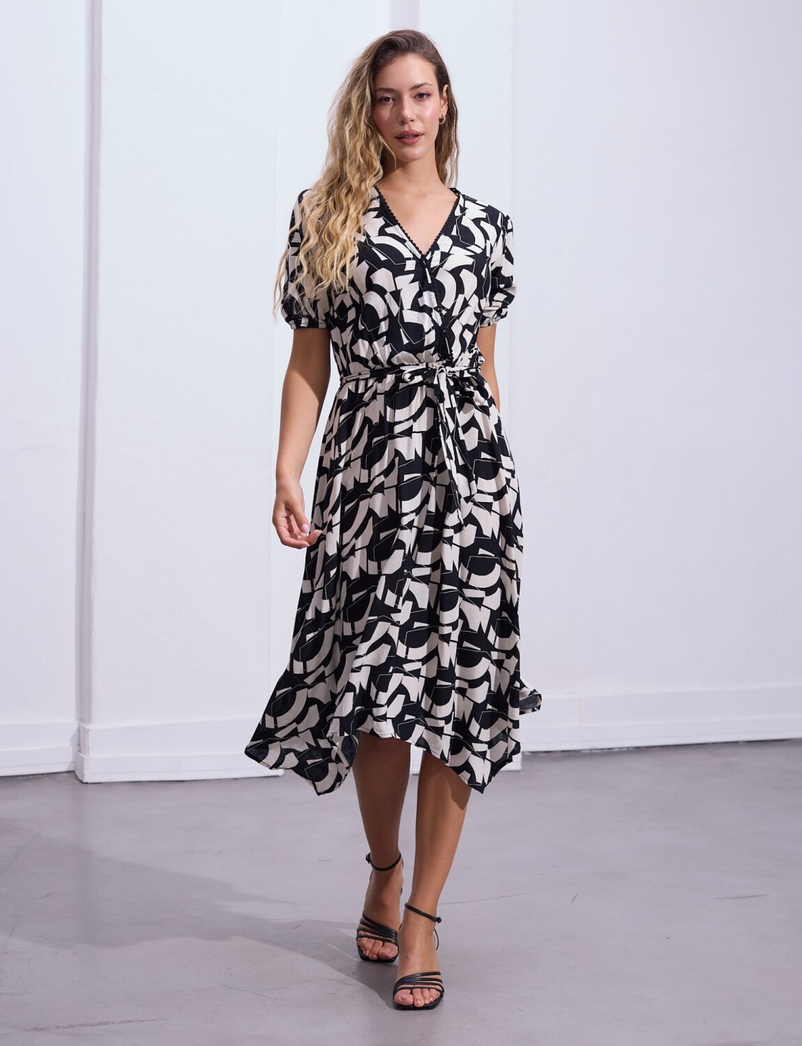 Vestido Printed Det Lazo - Negro/crudo